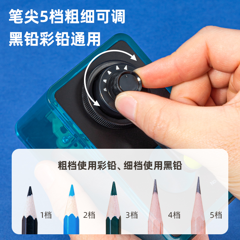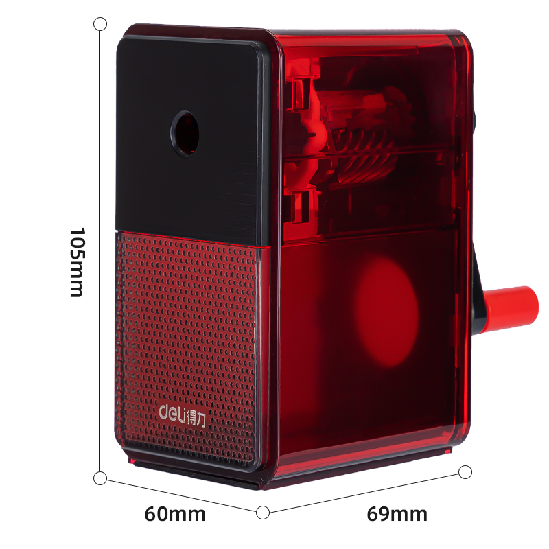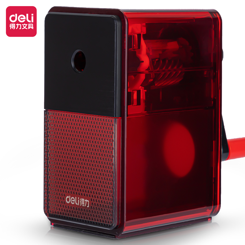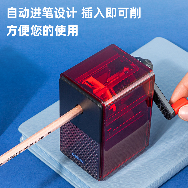 得力(deli)自动进笔卷笔刀 粗细可调削笔器 自动排断芯学生转笔刀 透明红71168