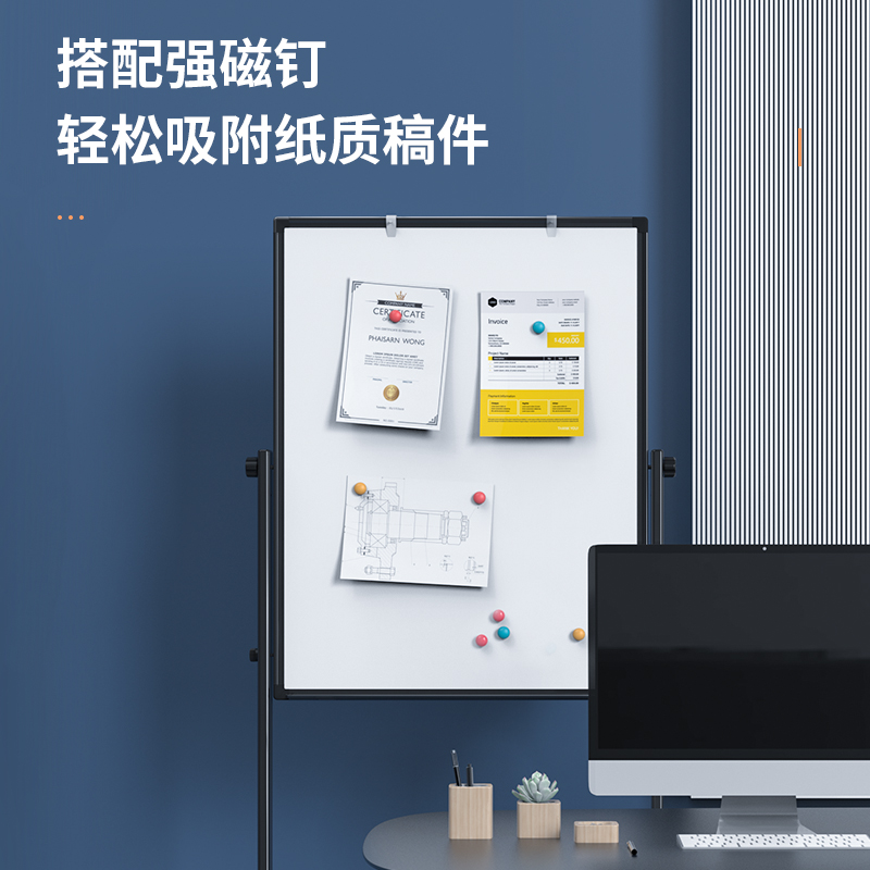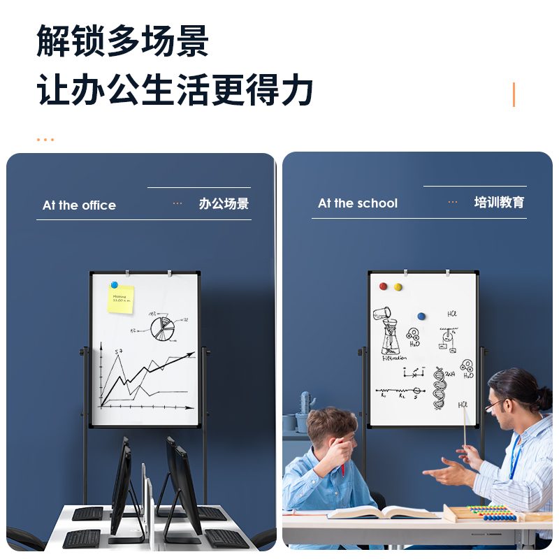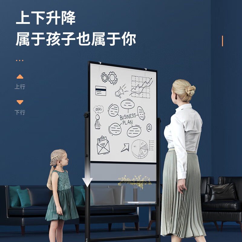 得力(deli)家用高端款90*60cmH型支架式白板 双面书写可移动升降儿童画板/办公会议白板黑板