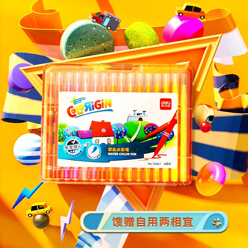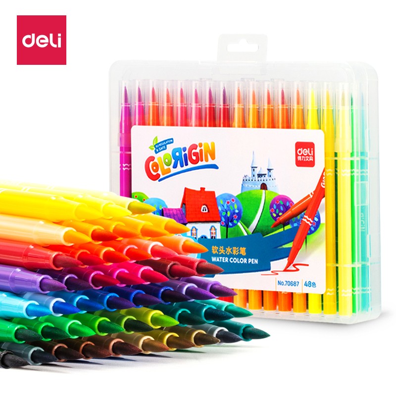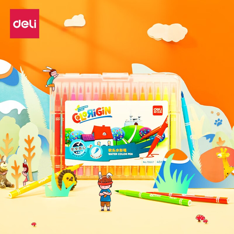 得力(deli)48色软头水彩笔 勾线漫画插画上色签字记号水性笔涂色颜色笔 学生儿童绘画美术用品画画