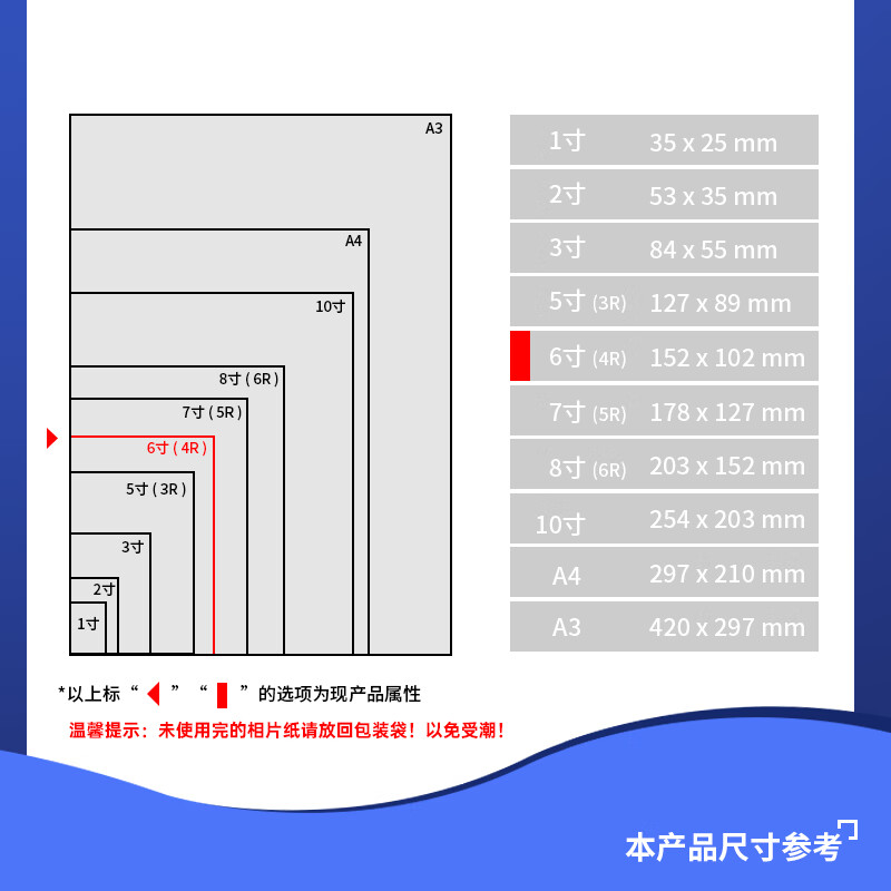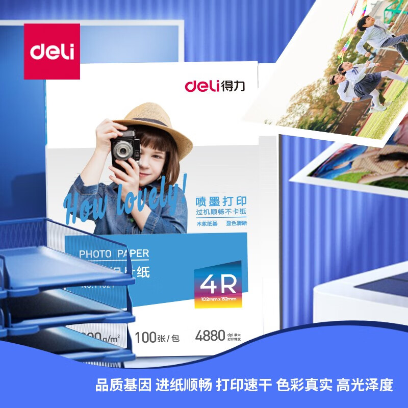 得力(deli)6英寸 200g高光面照片纸 相片打印纸 100张/包 11821