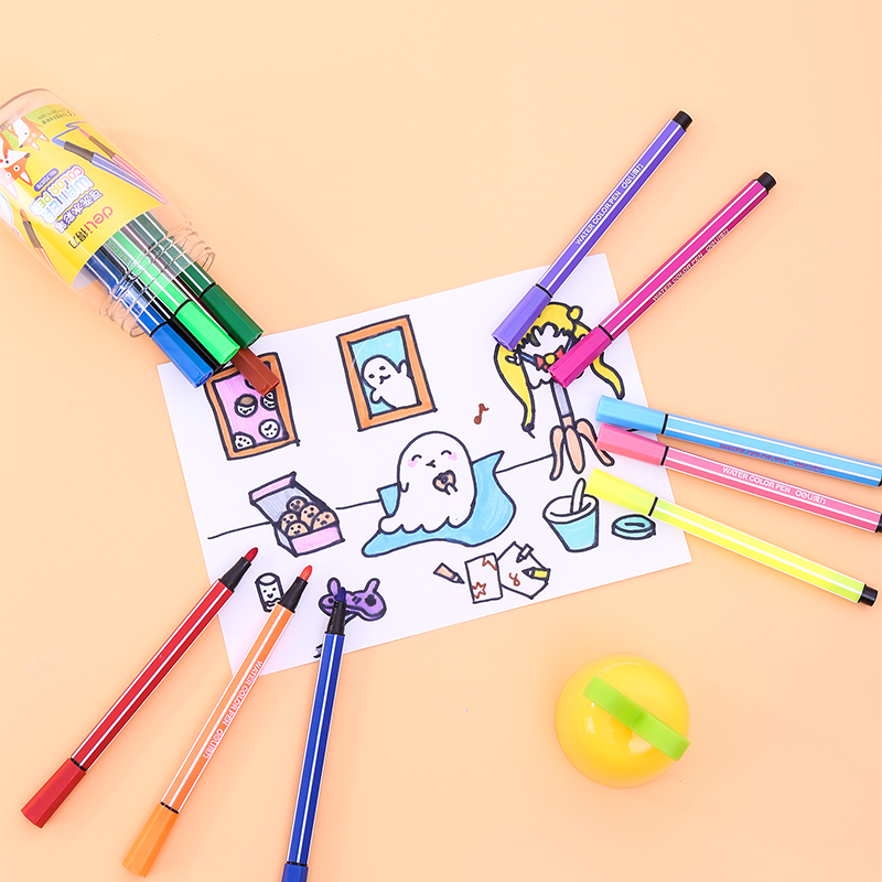 得力(deli)12色可洗水彩笔 儿童涂色颜色笔画画套装幼儿园绘画 萌萌筒70676