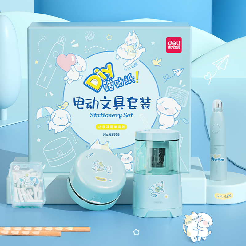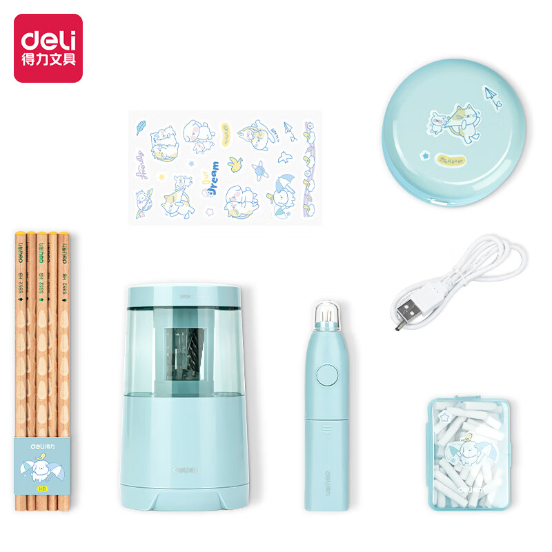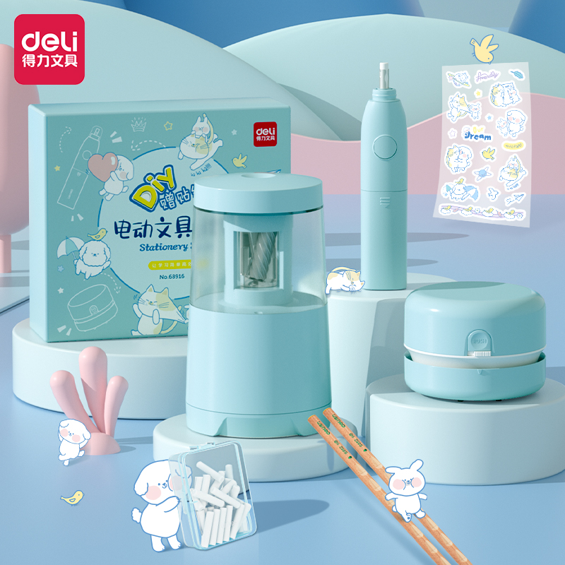 得力(deli) 学生文具套装/开学礼盒/新年礼物 (电动削笔机+桌面吸尘器+电动橡皮擦+铅笔) 大