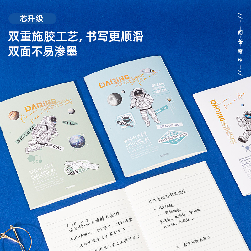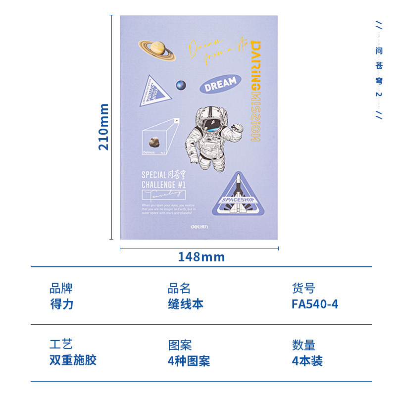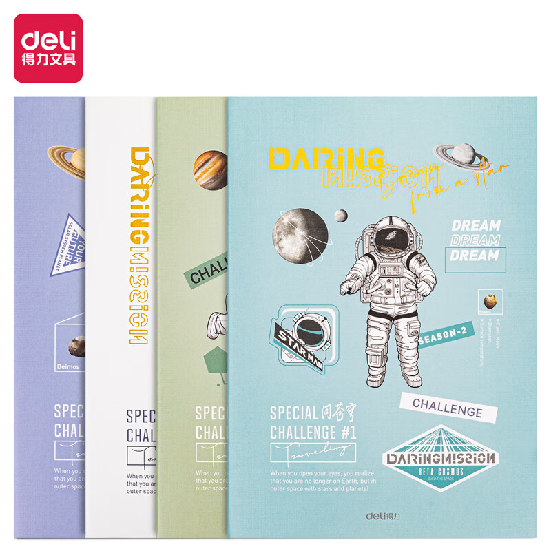得力(deli)问苍穹笔记本子缝线本 学生软抄本作业本记事本日记本文具 A5/40张 4本装 FA5