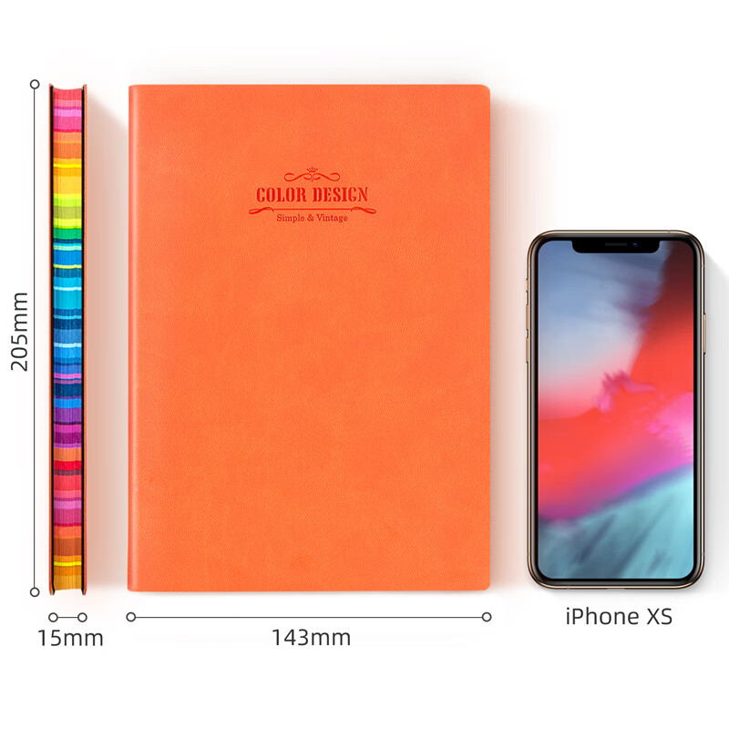 得力(deli)25K112张活力系列彩虹边缘软皮面笔记本子 学生记事本日记本文具 单本装/橙色31