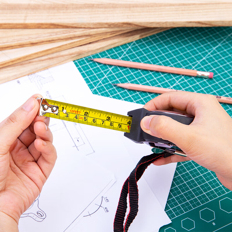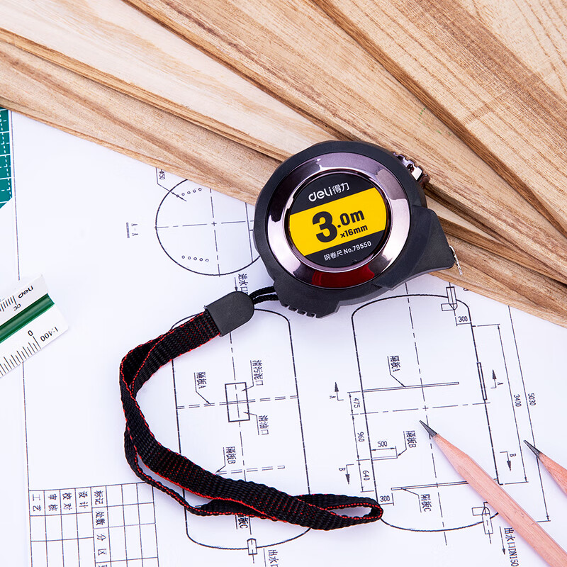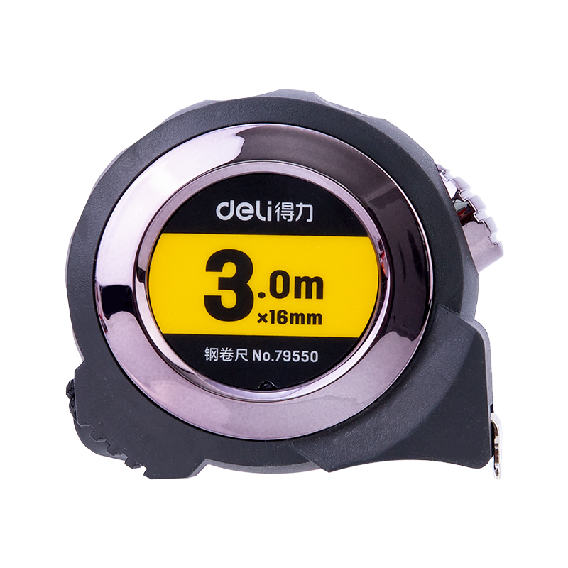 得力(deli)3m全包胶自锁钢卷尺 Ⅱ级精度测量尺子 黑色
