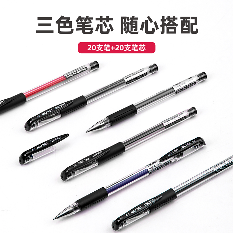 得力(deli)0.5mm中性笔水笔签字笔套装(20支笔黑+20支替芯混)33363 办公用品