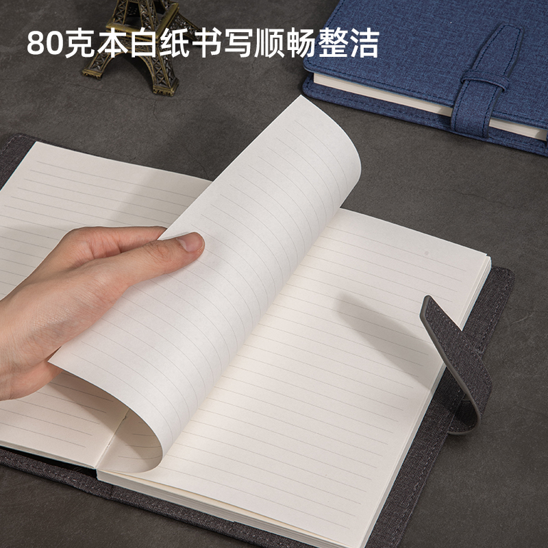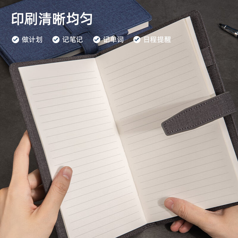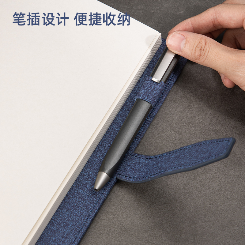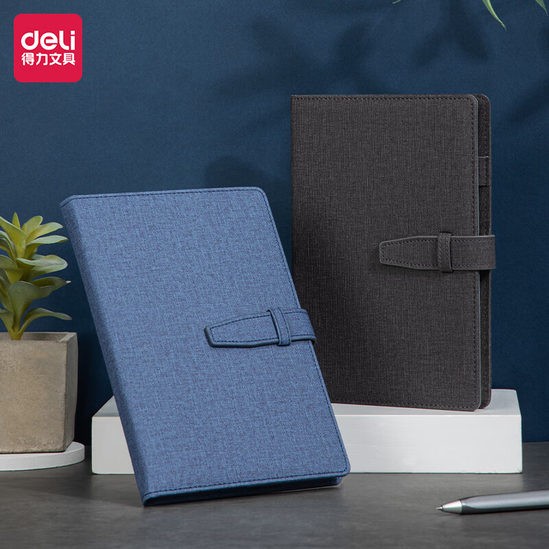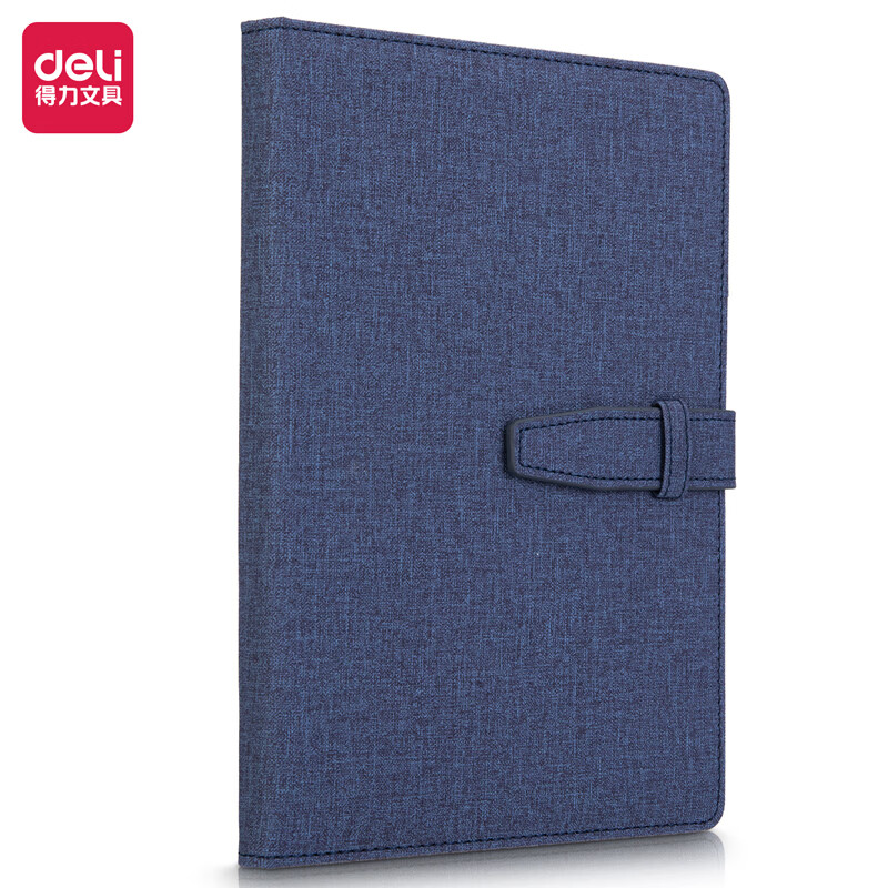 得力(deli)布艺扣带皮面本笔记本子 加厚会议记事本办公用品文具 25K96张 深蓝色 3171