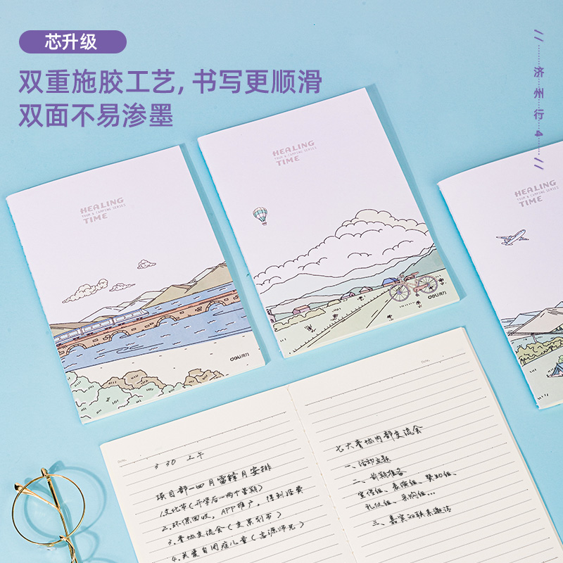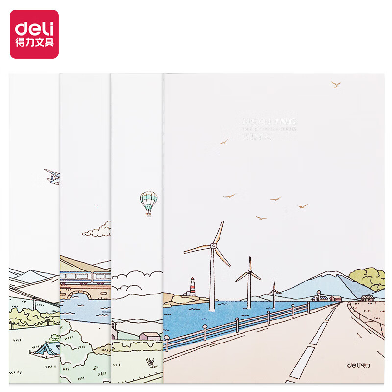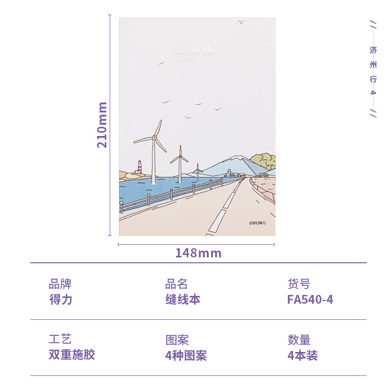 得力(deli)济州行笔记本子缝线本 学生软抄本作业本记事本日记本文具 A5/40张 4本装 FA5