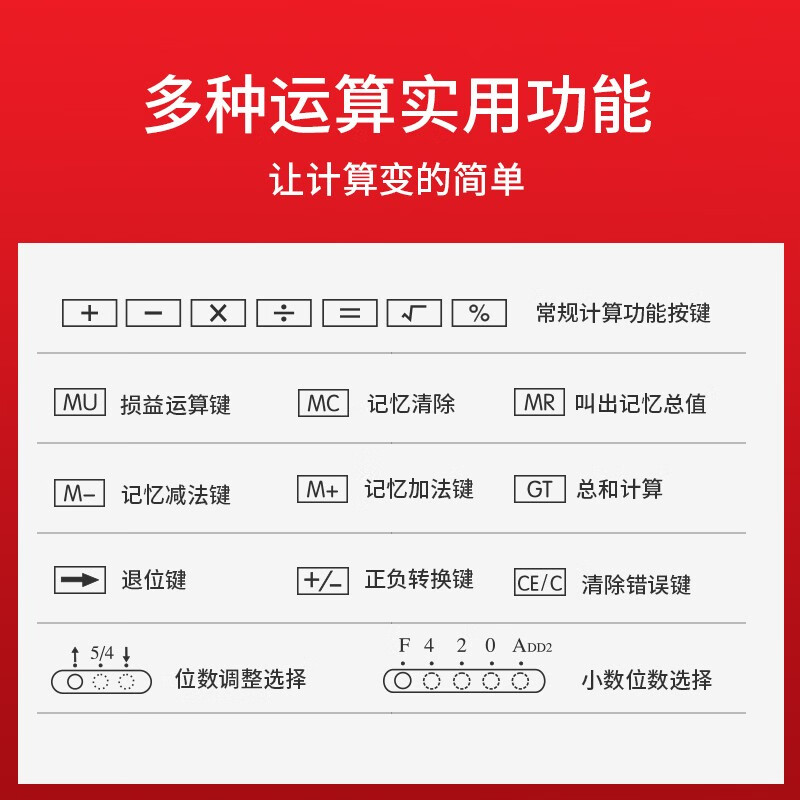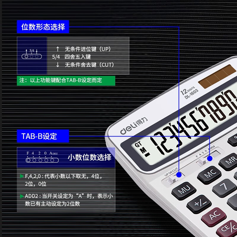 得力(deli)双电源财务计算器 12位大屏桌面计算机 白色