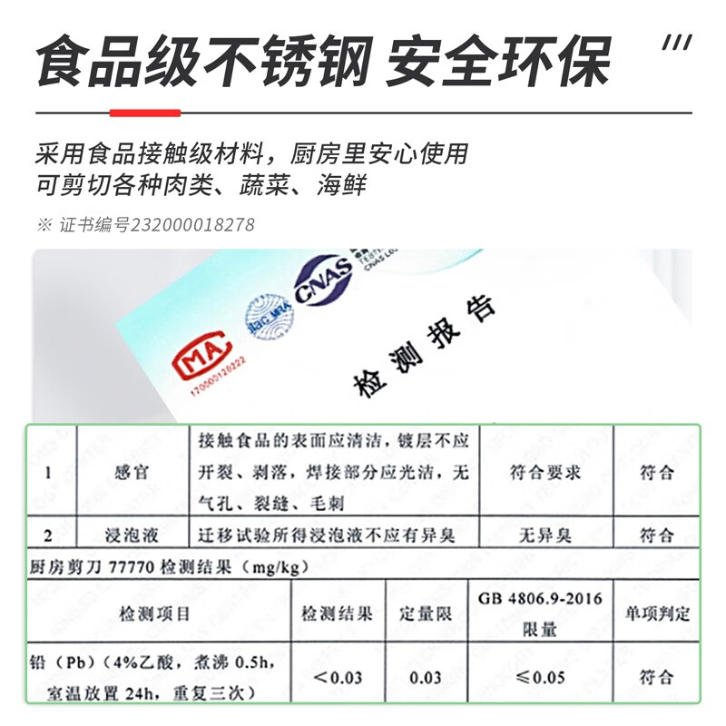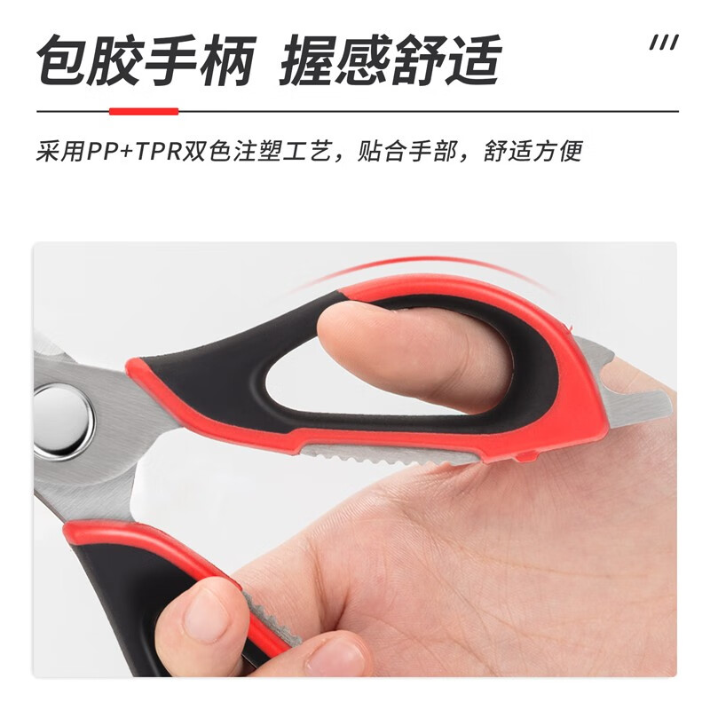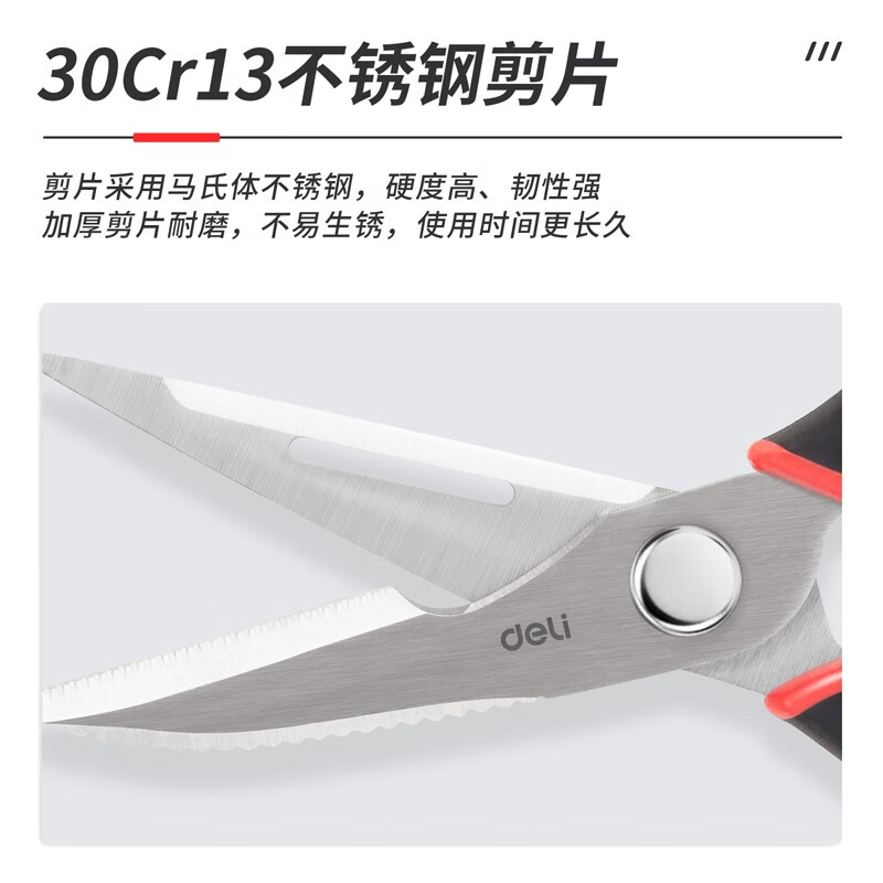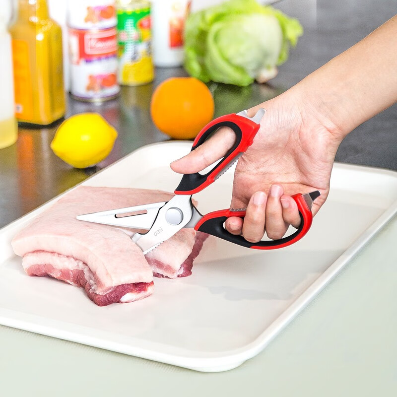得力(deli)多功能厨房剪刀 食物专用剪刀 锯齿防滑可拆分易清洗 红色77770