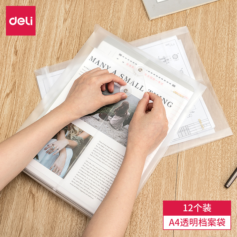 得力(deli)12个装A4透明文件袋防水档案袋 招标产检资料袋 文件保护 财务票据收纳5511A