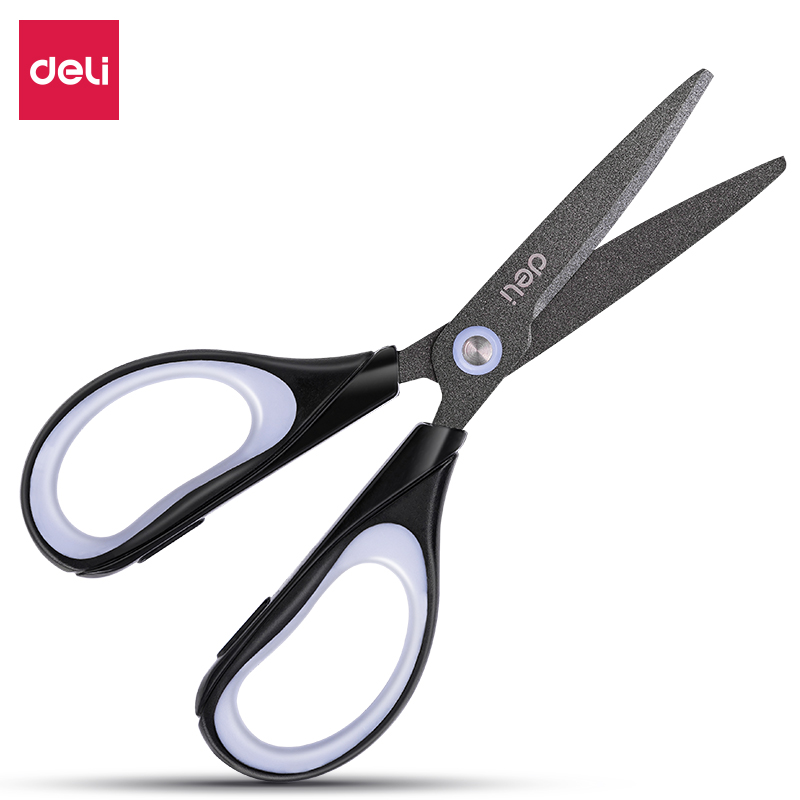 得力(deli)特氟龙材质防粘不锈钢剪刀 黑色6055