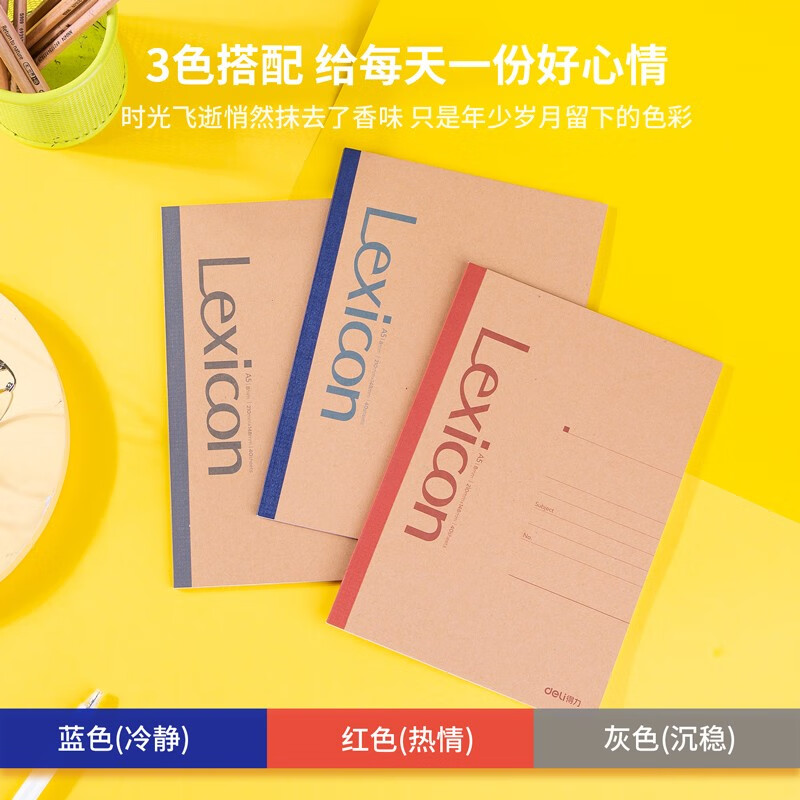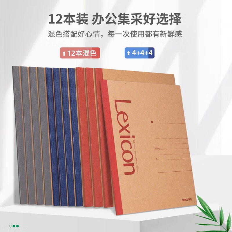得力(deli)12本A5/40张牛皮纸无线胶装软抄本记事本 工作笔记本子文具办公用品 7636