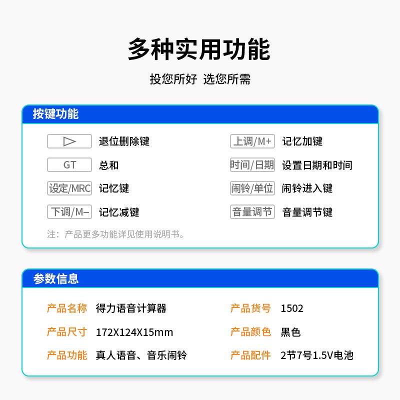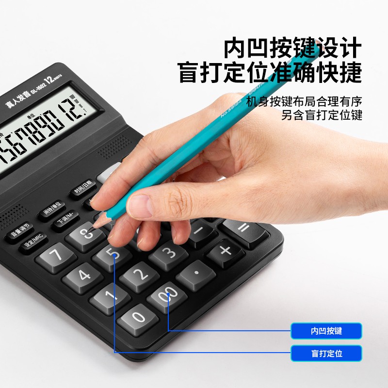 得力(deli)12位财务商超通用语音计算机 桌面语音计算器 黑色1502