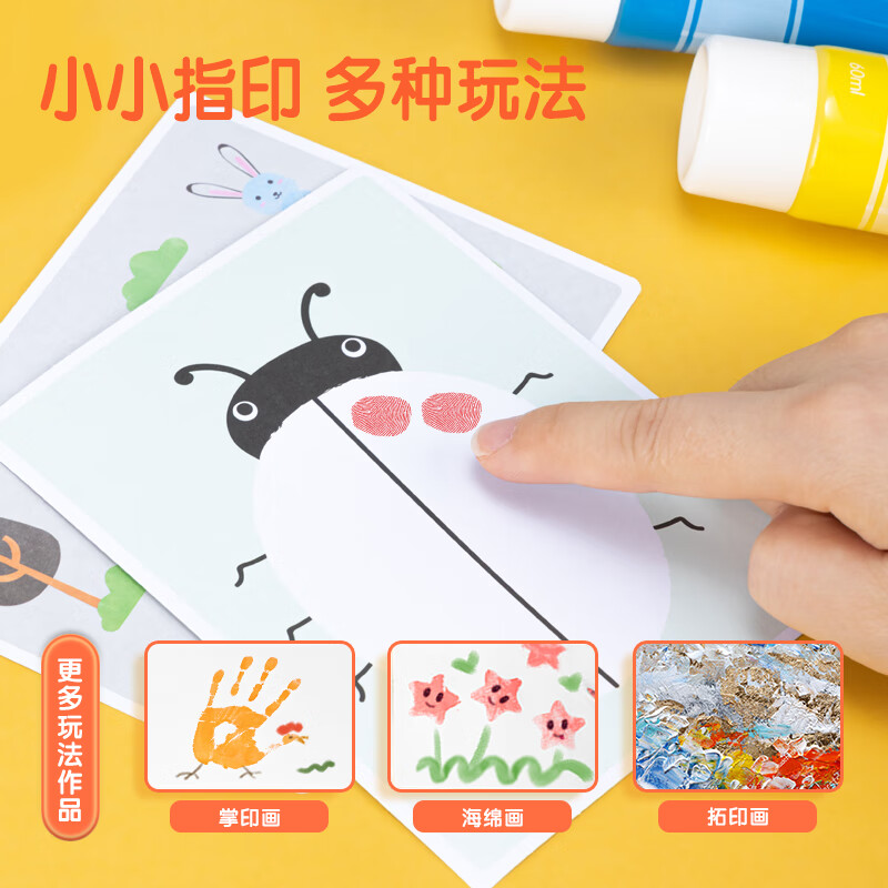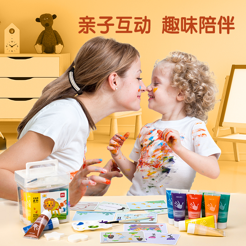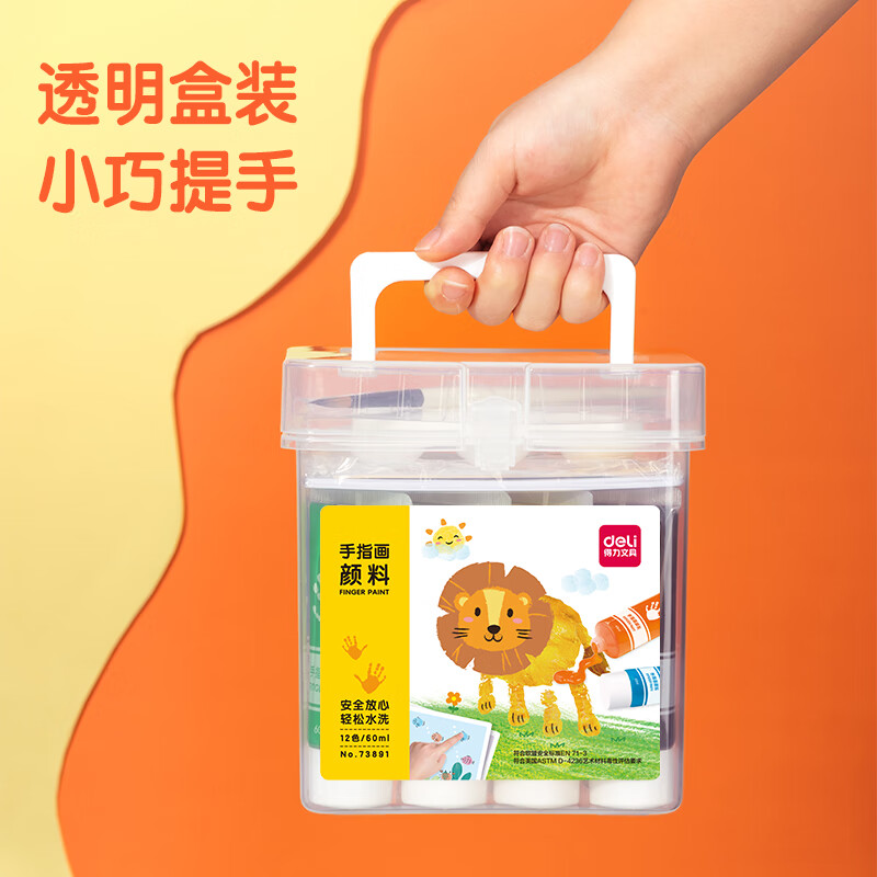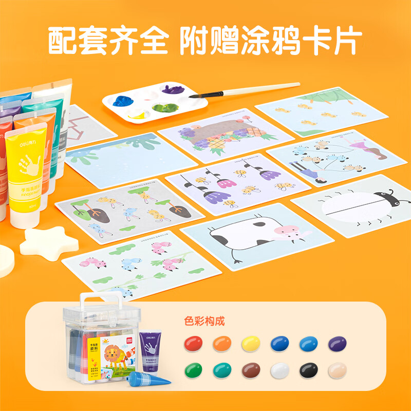 得力(deli)12色60ml可水洗手指画套装 儿童学生绘画画(带画笔调色盘)玩具彩色涂鸦生日新年礼