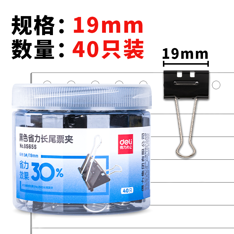 得力(deli)40只19mm省力黑色长尾夹票夹 5#金属燕尾夹票据夹子 办公用品 小号8565S