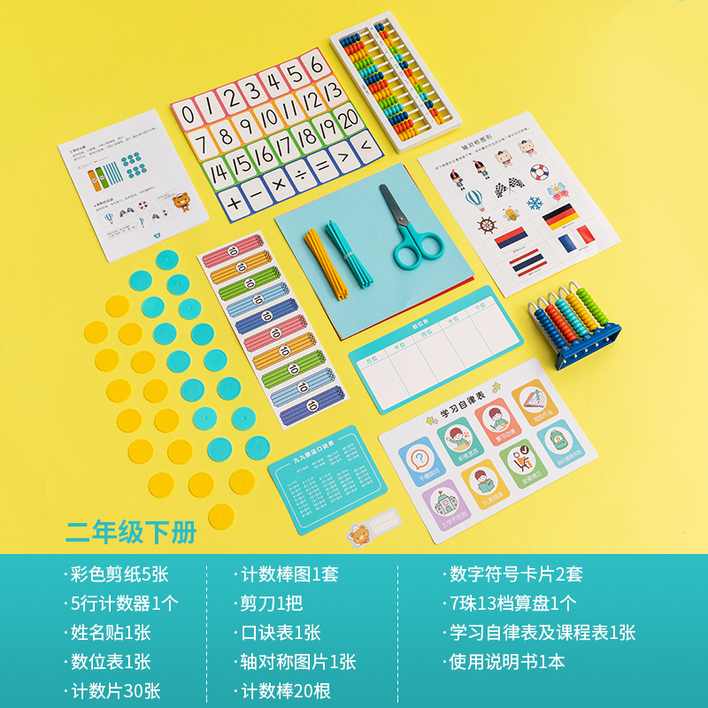 得力(deli)小学生二年级下册学具套装同步教材 5行计数器 7珠13行算盘教学教具 74333
