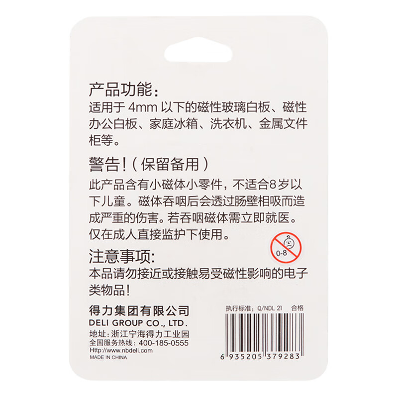 得力(deli)玻璃白板专用配件强磁钉白板磁钉黑板吸铁石/磁铁 4粒/卡白板配件7813