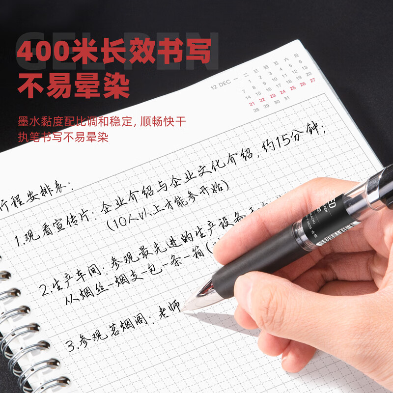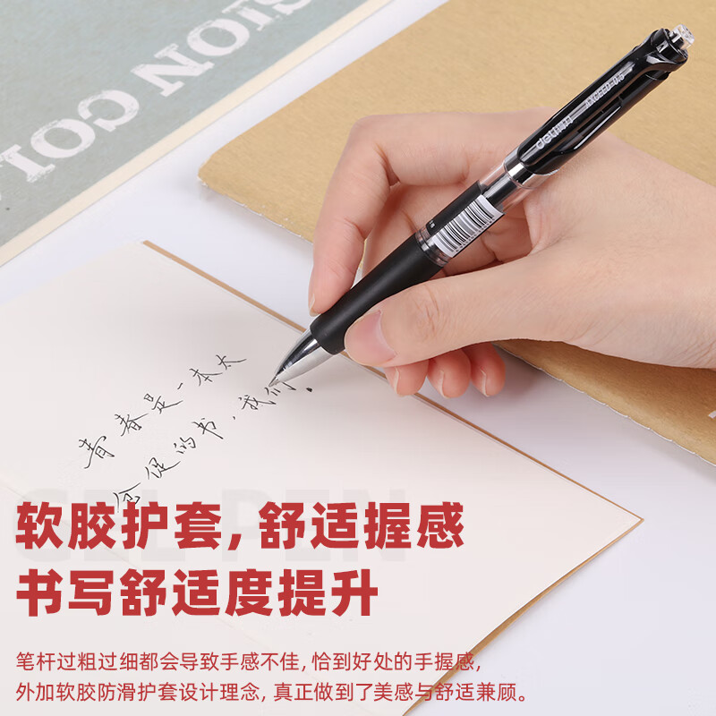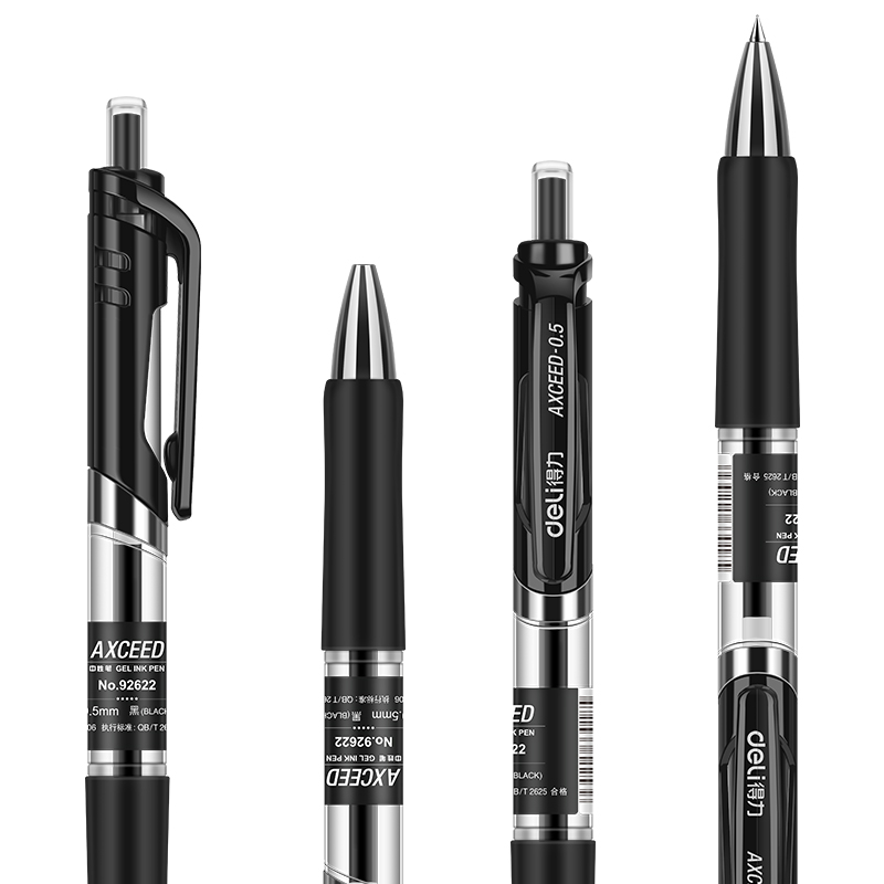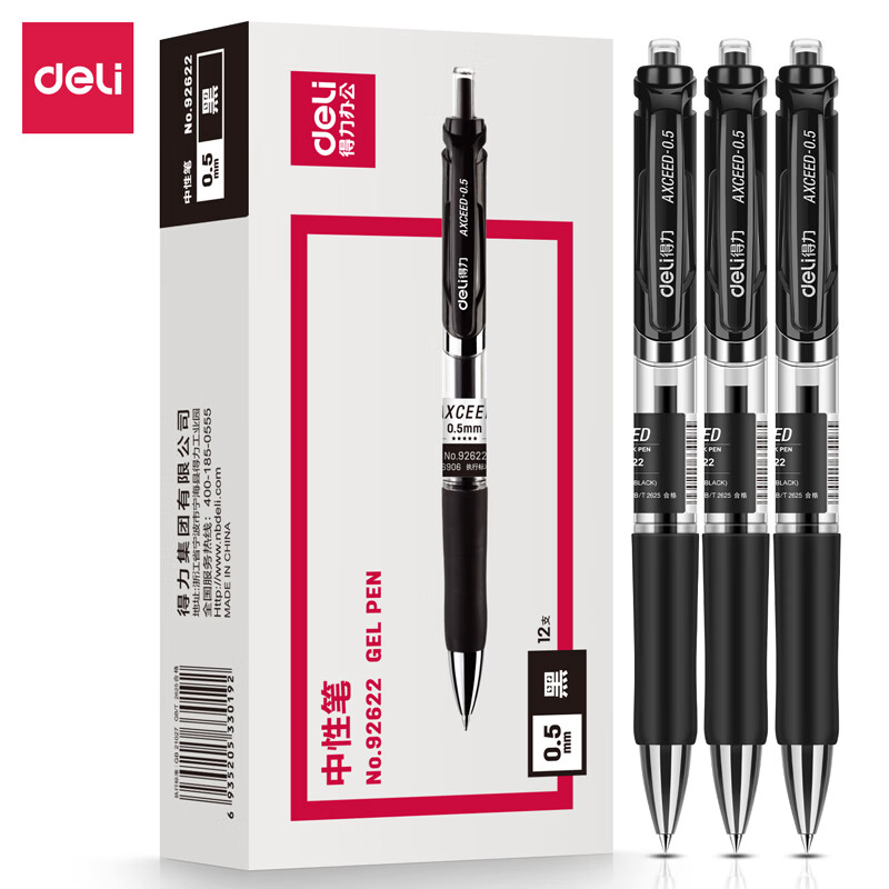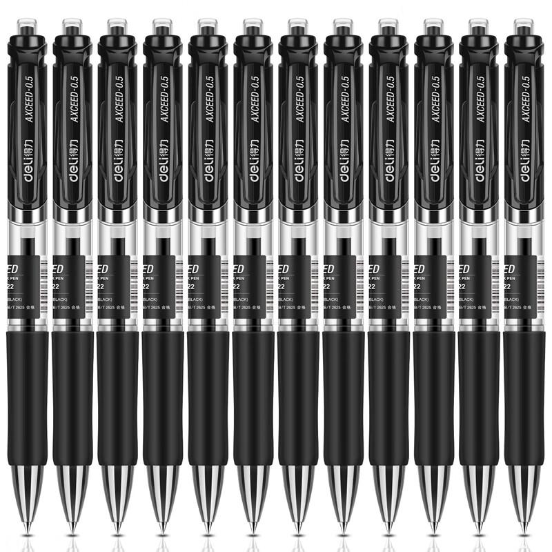 得力(deli)中性笔签字笔 0.5mm子弹头按动笔水笔办公用品 黑色 12支/盒 92622