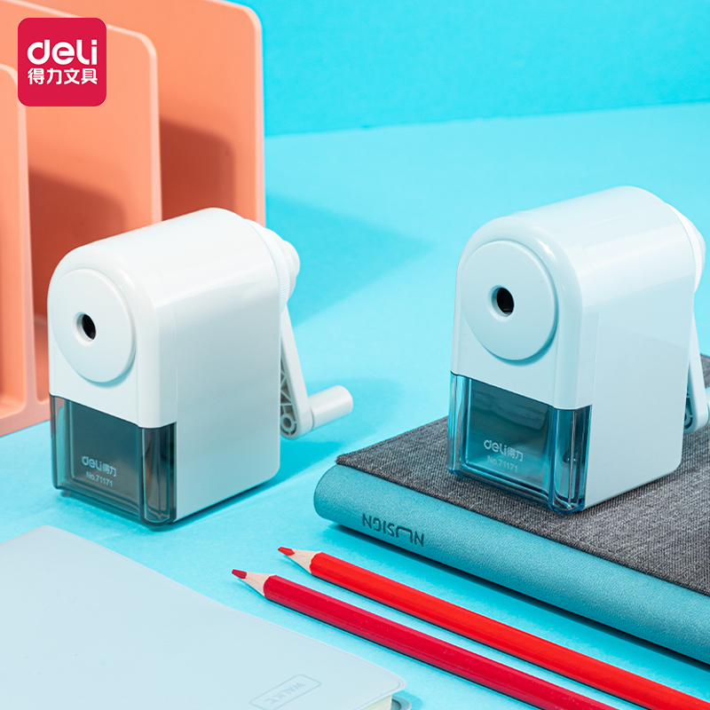 得力(deli)简约削笔机 粗细可调卷笔刀自动进笔转笔刀 自动排断芯学生文具 蓝71171