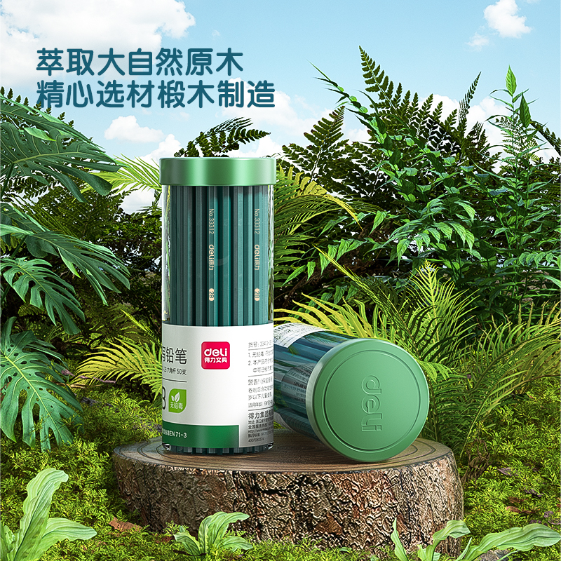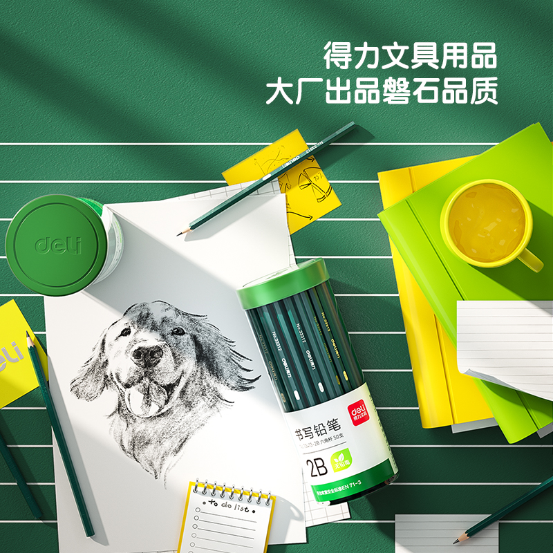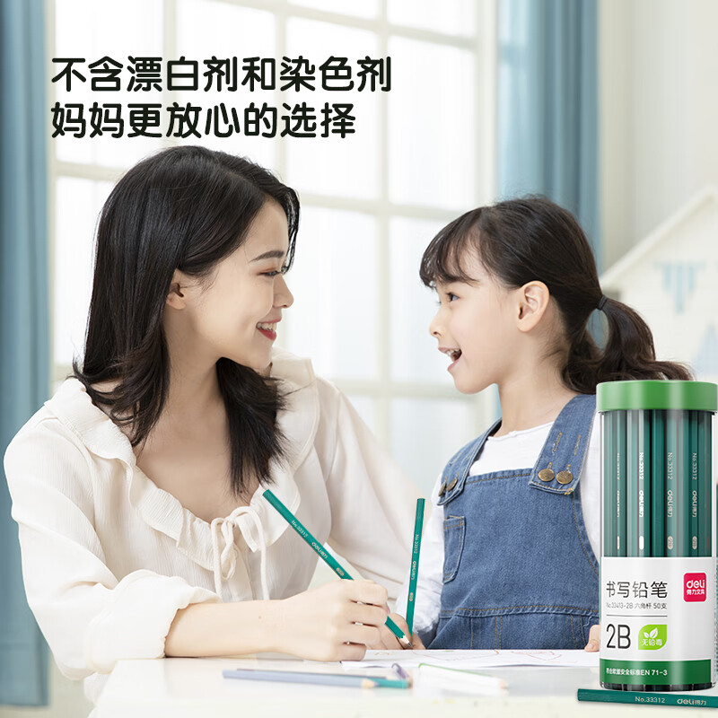 得力(deli)50支2B铅笔 六角杆学生考试绘图铅笔 书写铅笔 33413-2B