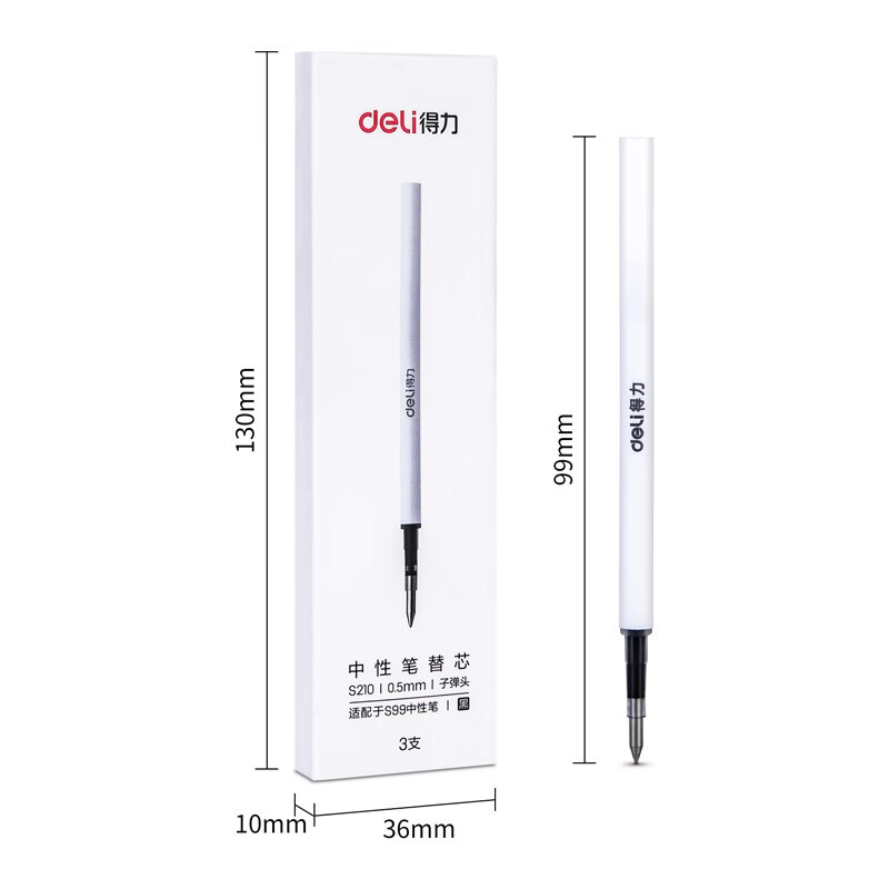 得力(deli)旋转中性笔芯 S99签字笔专用替芯 3支/盒S210