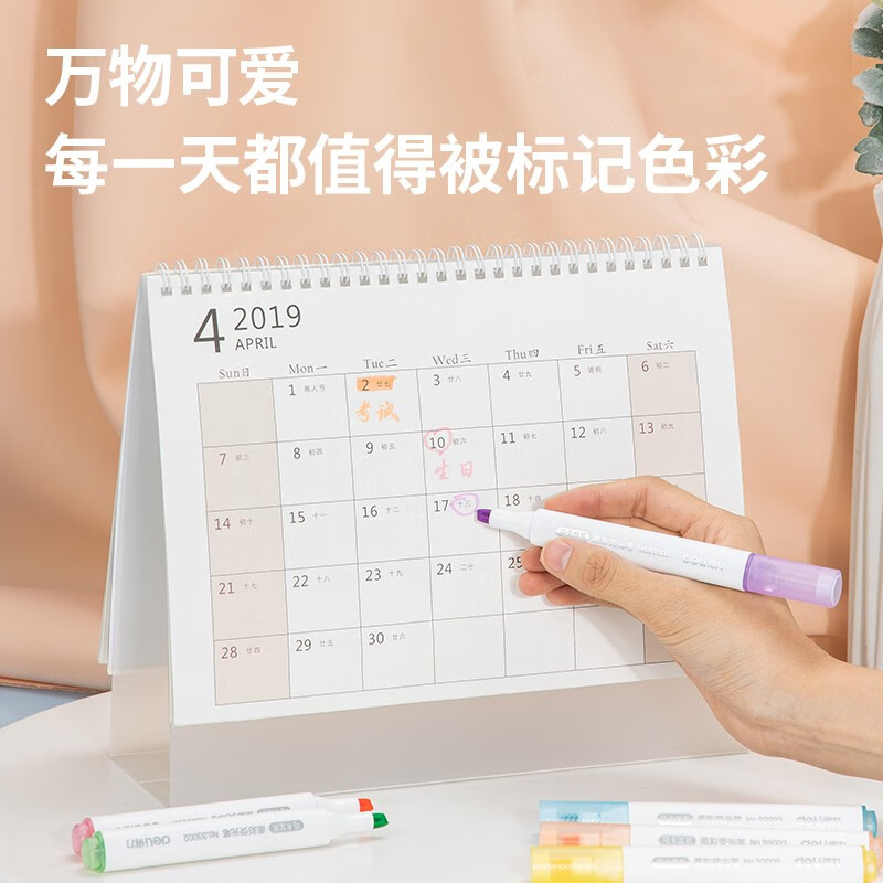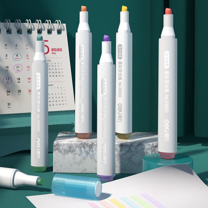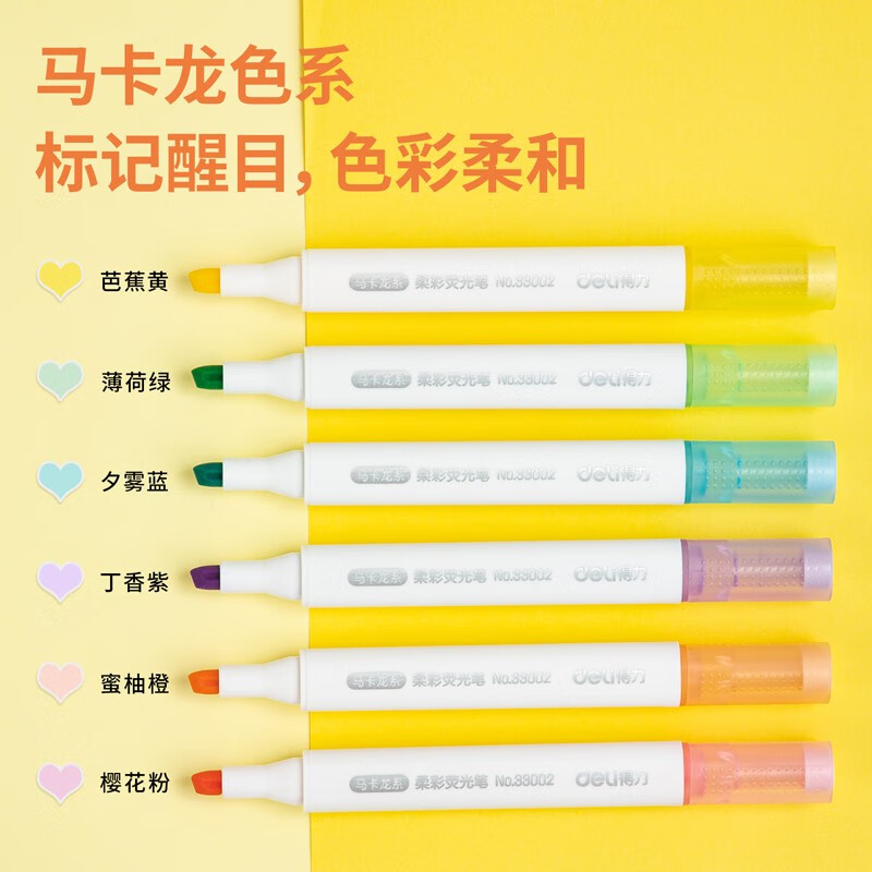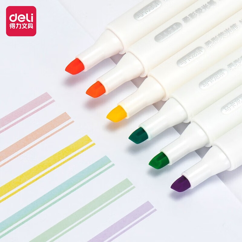 得力(deli)6色柔彩荧光笔套装 醒目标记笔 手帐可用水性记号笔6支/盒33002