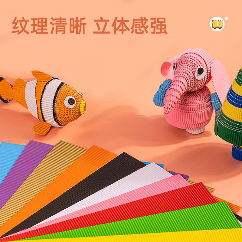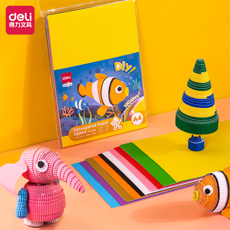 得力(deli)儿童彩色手工diy瓦楞纸制作 A4美工纸幼儿园手工折叠纸材料 10张混色83613