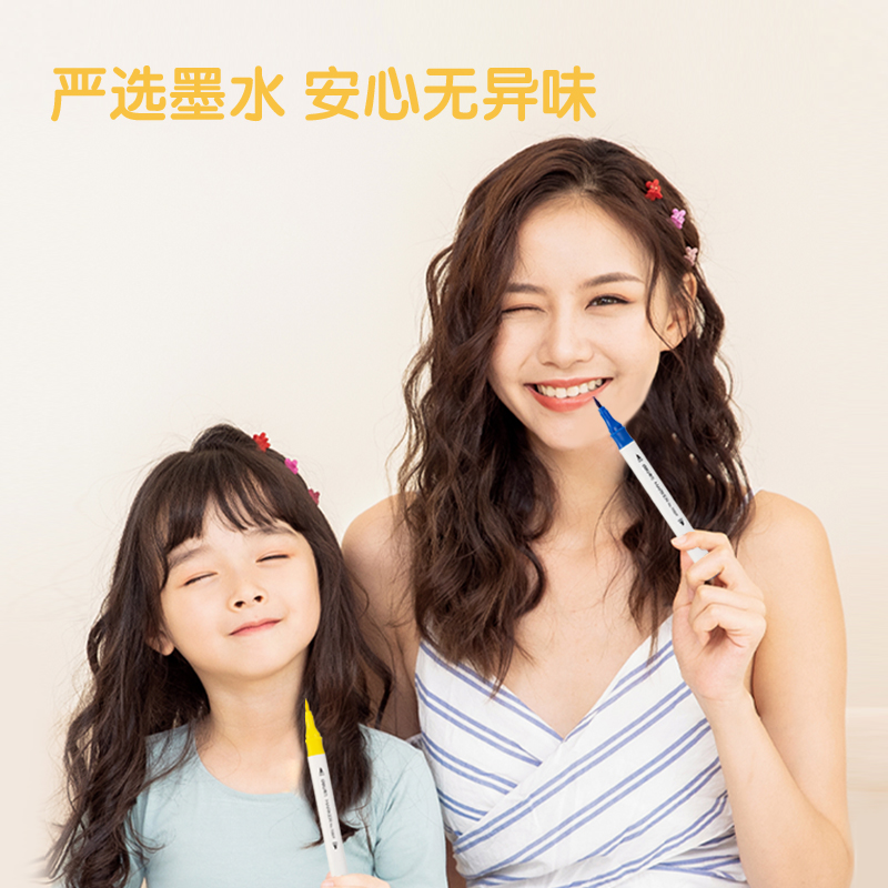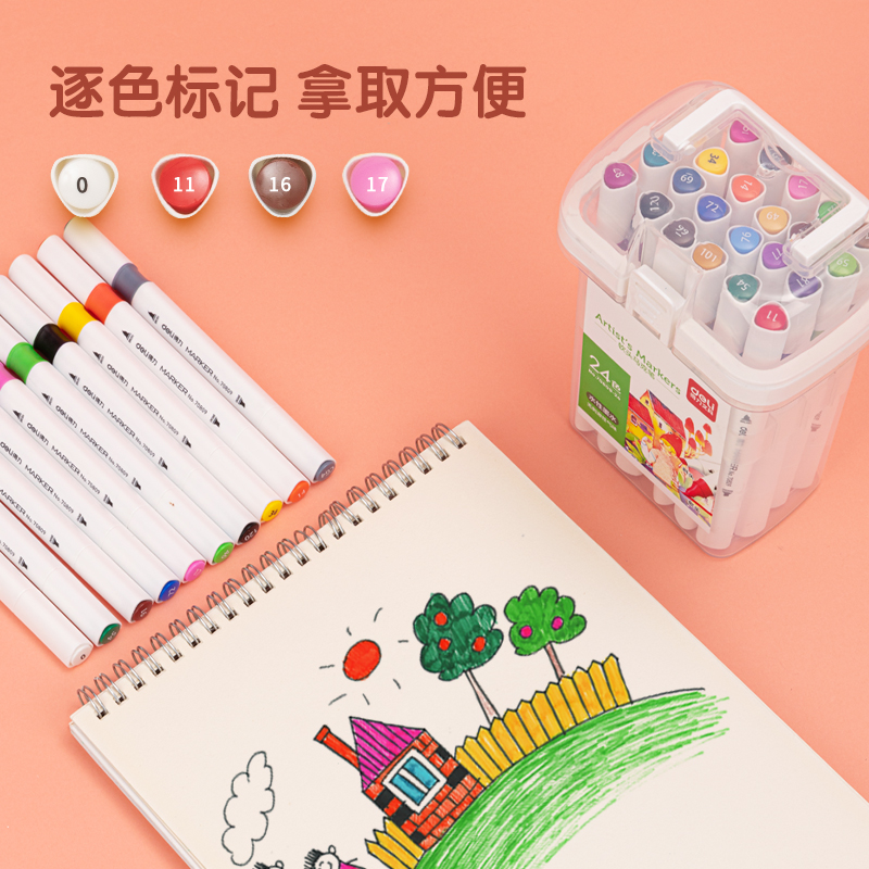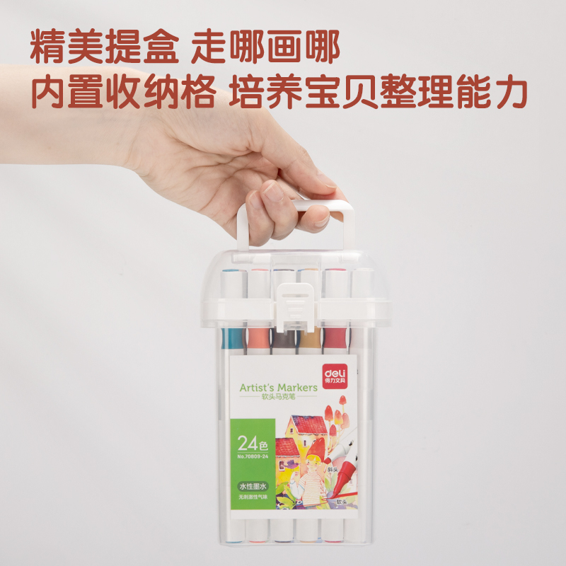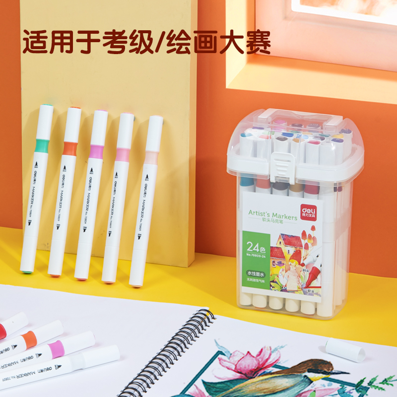 得力(deli)24色水性马克笔套装 双头无气味软头水彩笔学生美术专用儿童绘画画笔套装 70809-