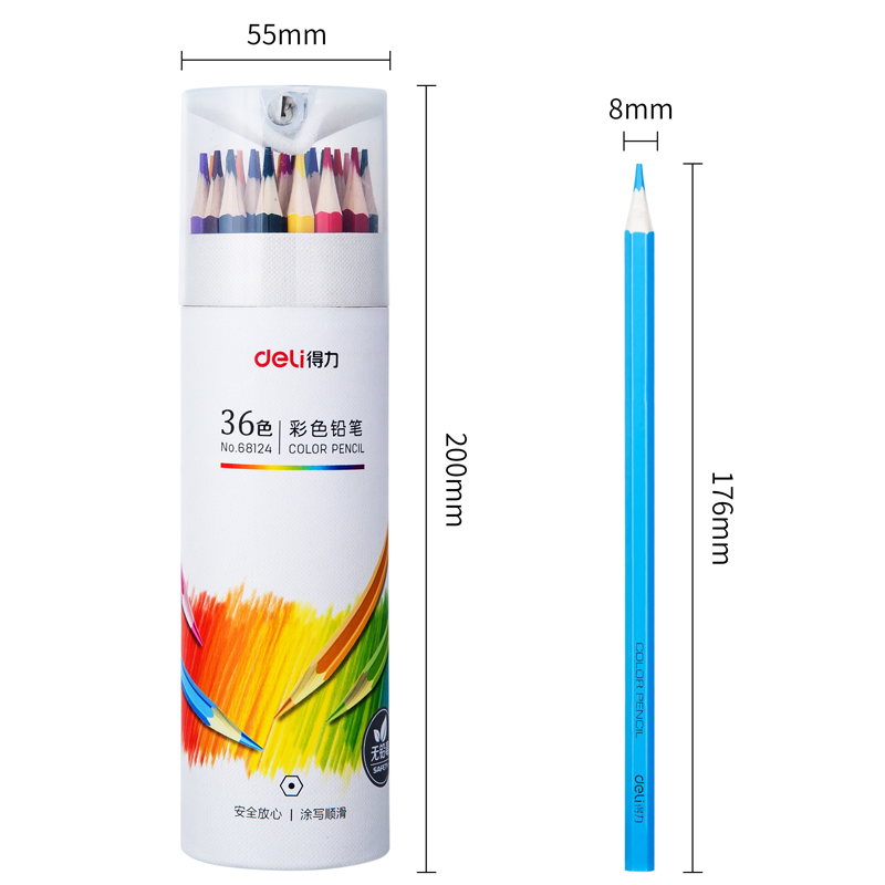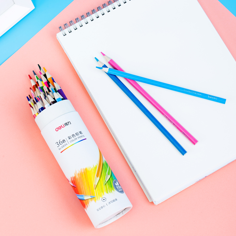 得力(deli)36色纸桶装学生绘画艺术写生彩铅彩色铅笔儿童涂色填色彩笔绘画笔套装 68124