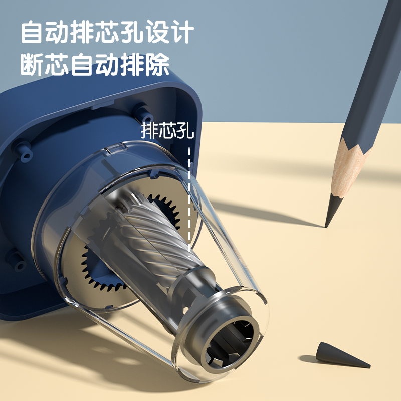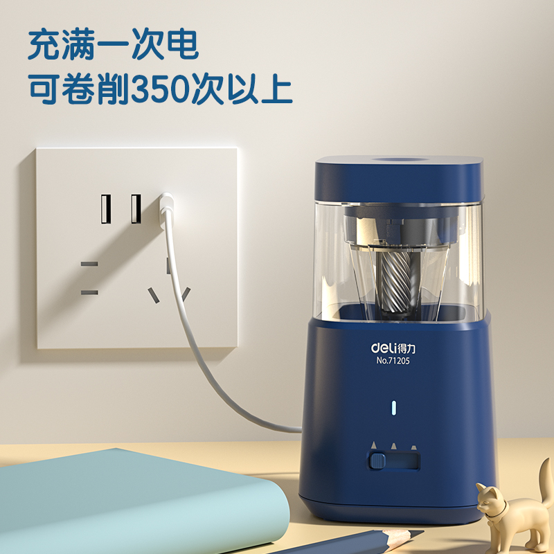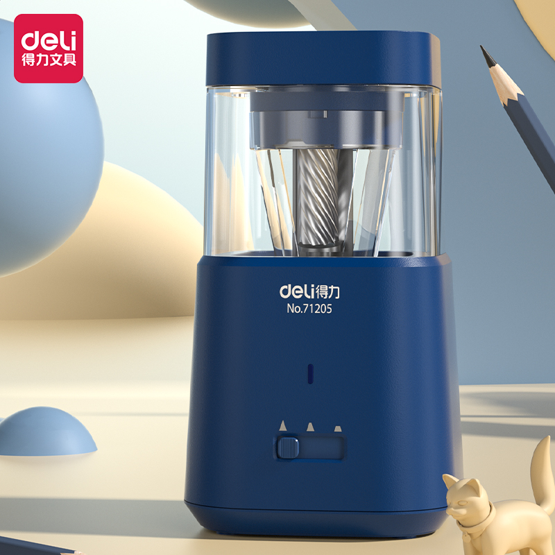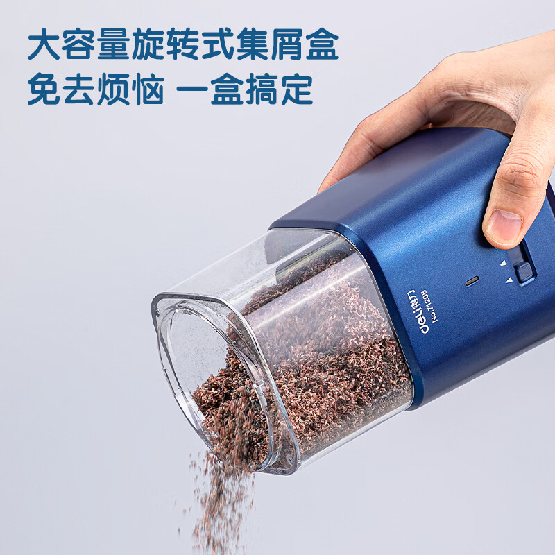 得力(deli)学生大孔径电动削笔机/自动排除断芯转笔刀/粗细可调削笔器 珠光蓝 71205