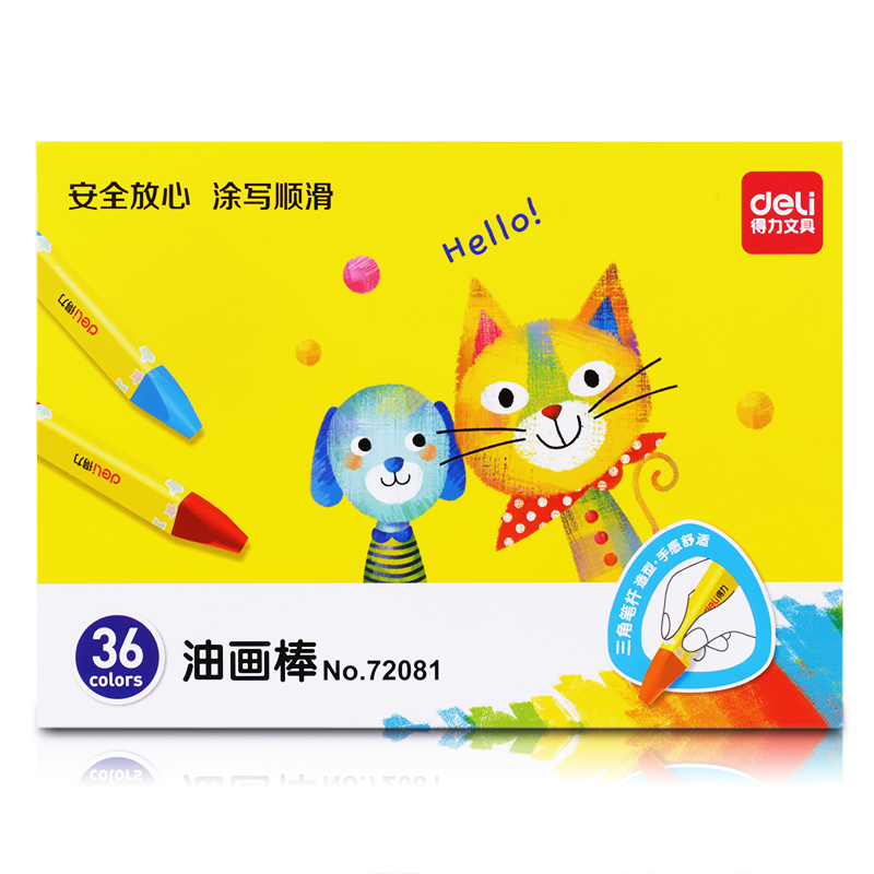 得力(deli)36色学生三角杆丝滑油画棒 儿童蜡笔绘画笔72081