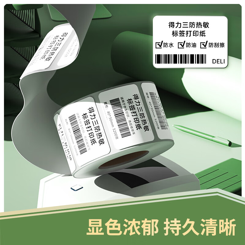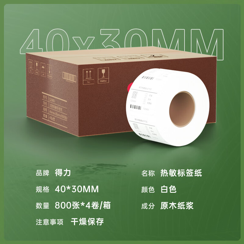 得力(deli)40*30mm三防热敏标签打印纸 电子面单标签不干胶打印纸电子称条码纸800张*4卷