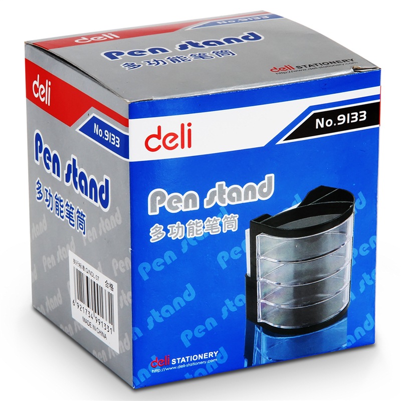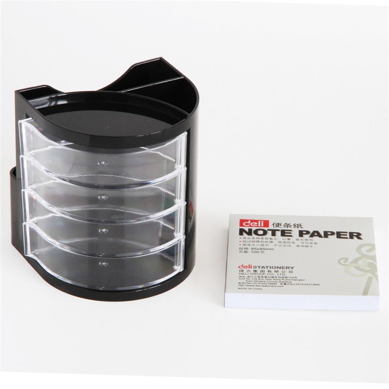 得力(deli)四层创意笔筒 赠便条纸桌面收纳办公盒 黑色