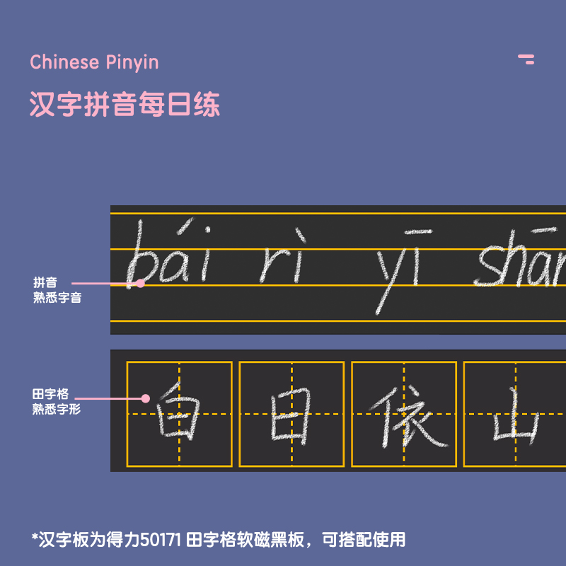 得力(deli)磁性黑板贴软拼音田字格四英语生字格磁贴磁铁磁力格子教师大号墙贴家用可移除儿童白板50