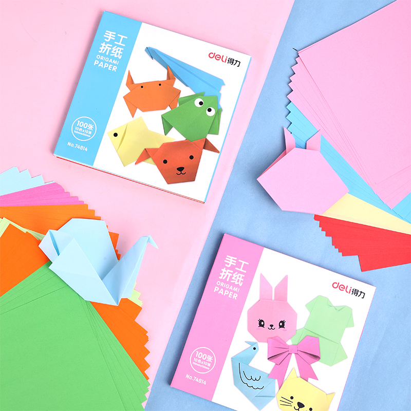 得力(deli)100张幼儿趣味手工折纸 小学生益智玩具剪纸10色150*150mm74814