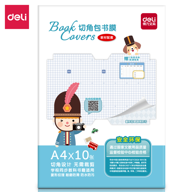 得力(deli)10张A4透明磨砂带切角自粘包书皮包书膜 菱形纹路防水学生书皮 附带姓名贴课程表 3