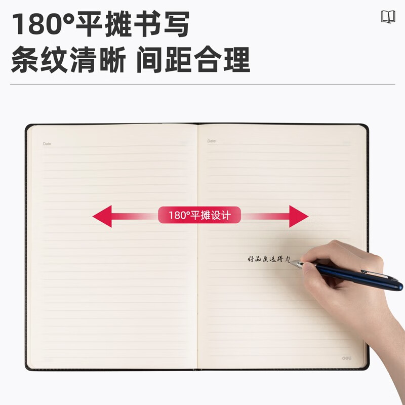 得力(deli) 16K80张大号商务经典单包贴芯PU材质皮面本办公用品 会议记事本笔记本子文具 7