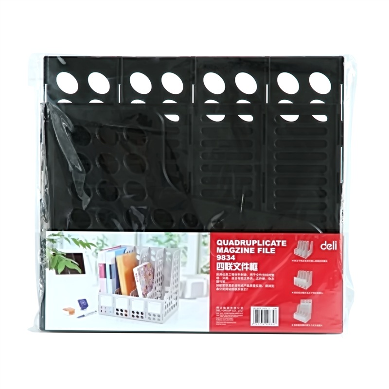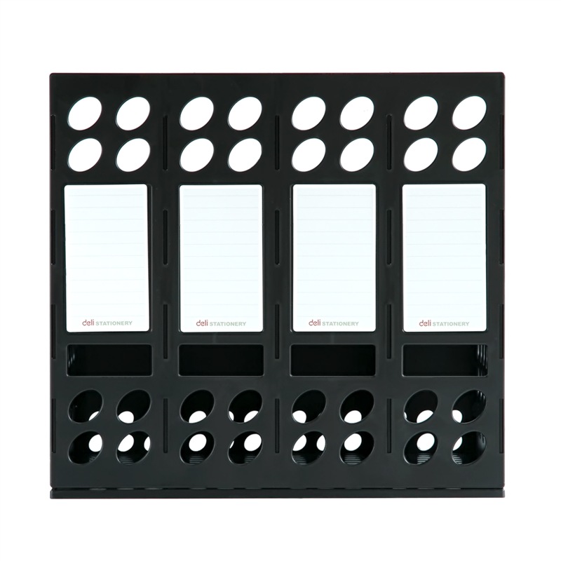 得力(deli)四联镂空桌面文件框 办公室桌面多层资料架子 四栏带标签稳固文件栏文件筐/资料框 黑色