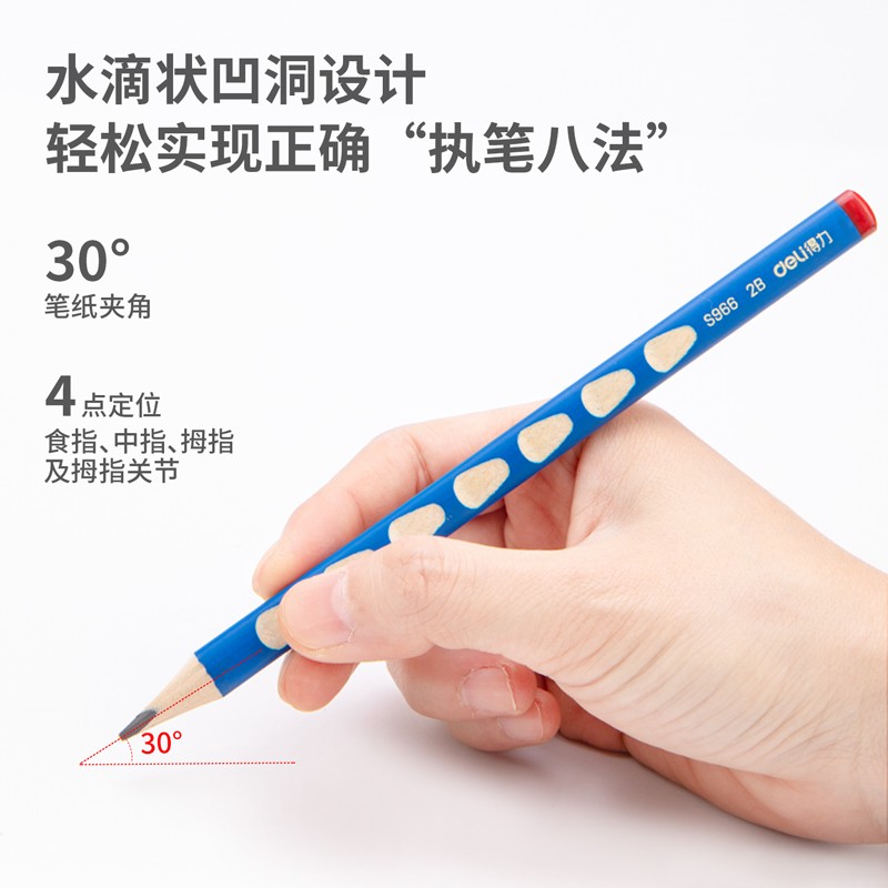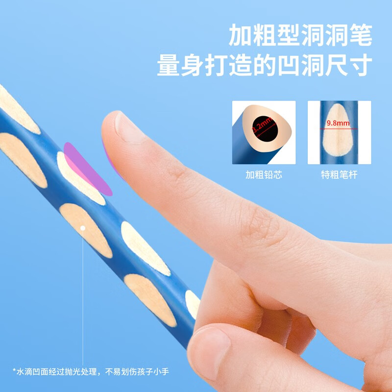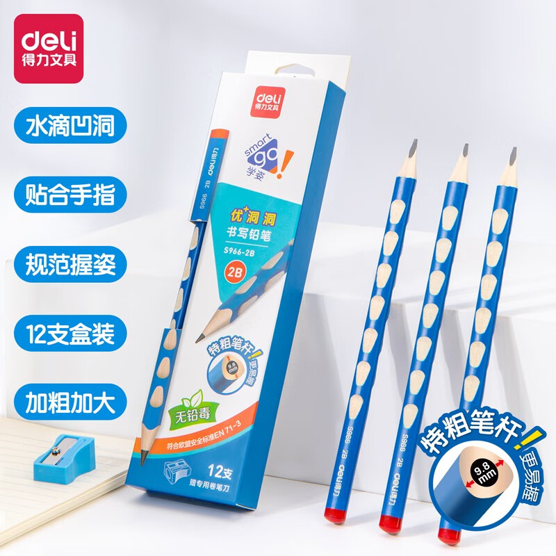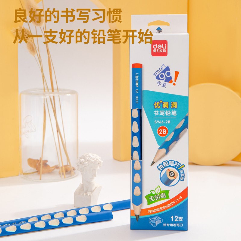 得力(deli)洞洞铅笔 12支2B加粗杆易抓握洞洞笔 儿童矫正铅笔 学生练字笔 S966-2B