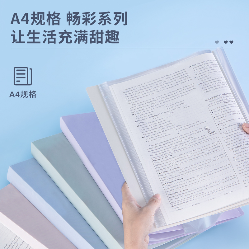 得力(deli)A4/60页莫兰迪色系学生资料册活页文件夹学生试卷资料分科收纳袋72674颜色随机