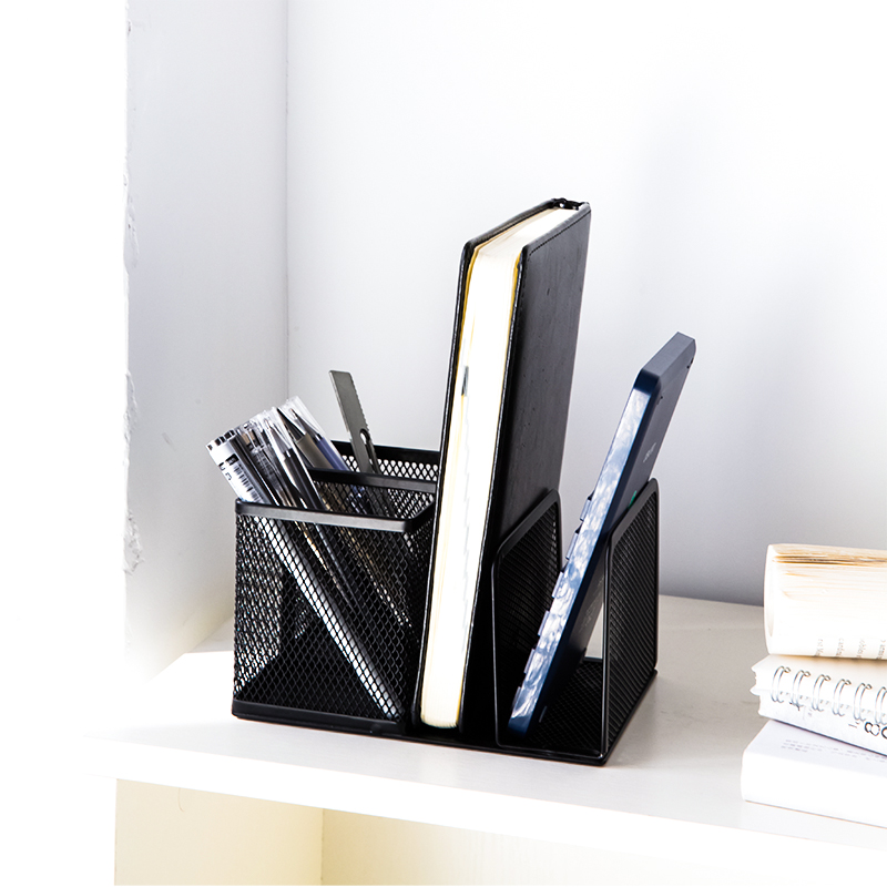 得力(deli)书立+笔筒金属网格创意桌面收纳 黑色8917