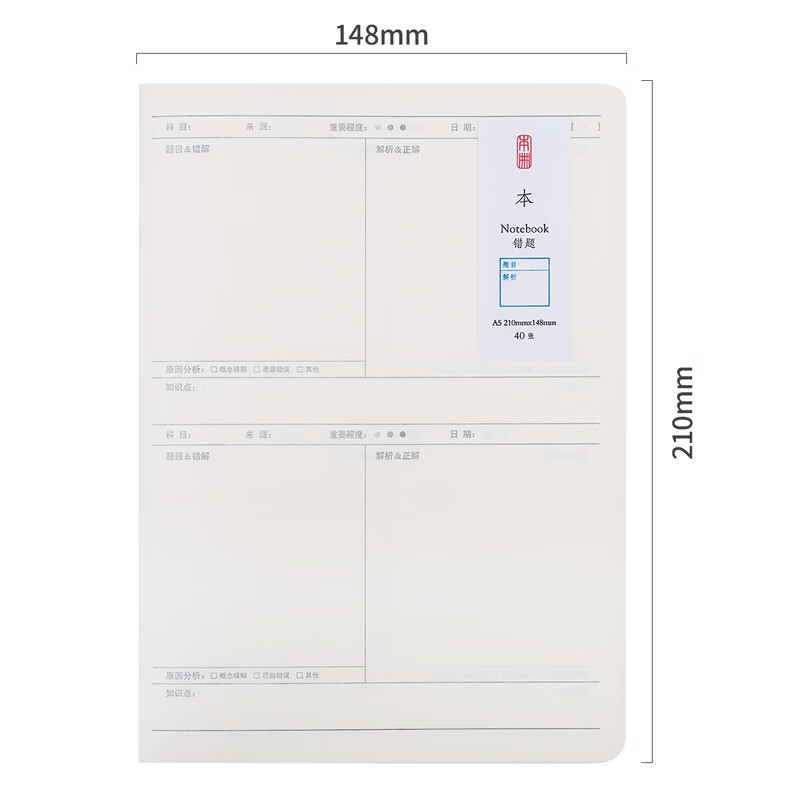 得力(deli)8本A5/40张无印风学生错题本软壳骑马订本 加厚软抄本作业本记事本笔记本子文具 D