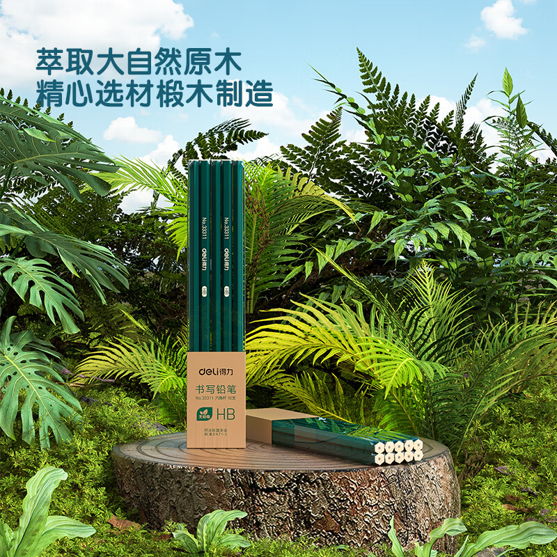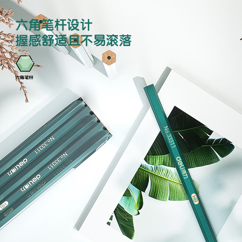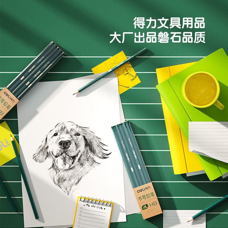得力(deli)经典绿杆学生HB铅笔六角笔杆素描绘图铅笔 10支33311