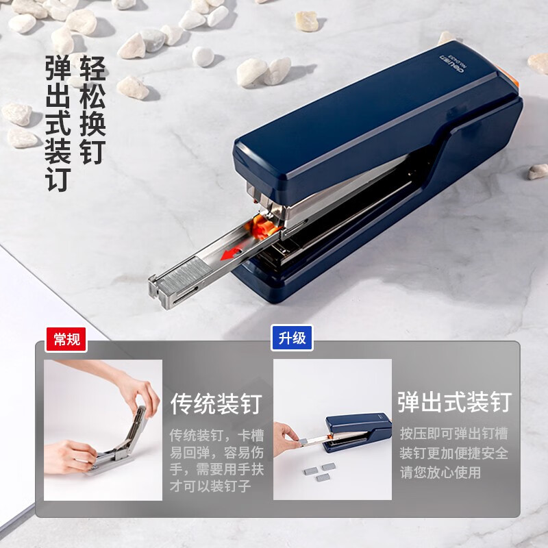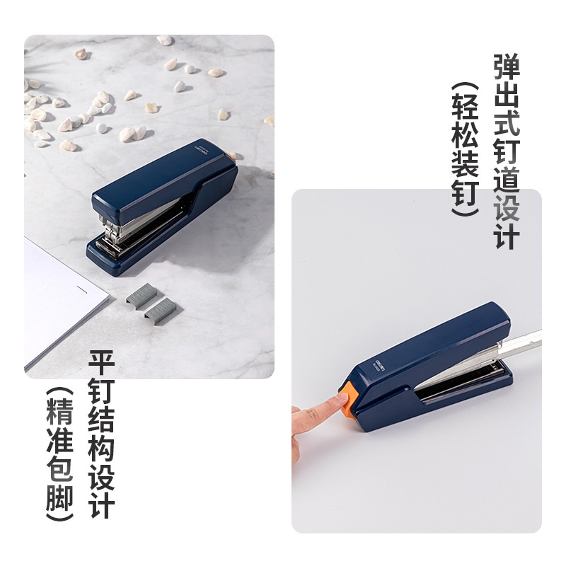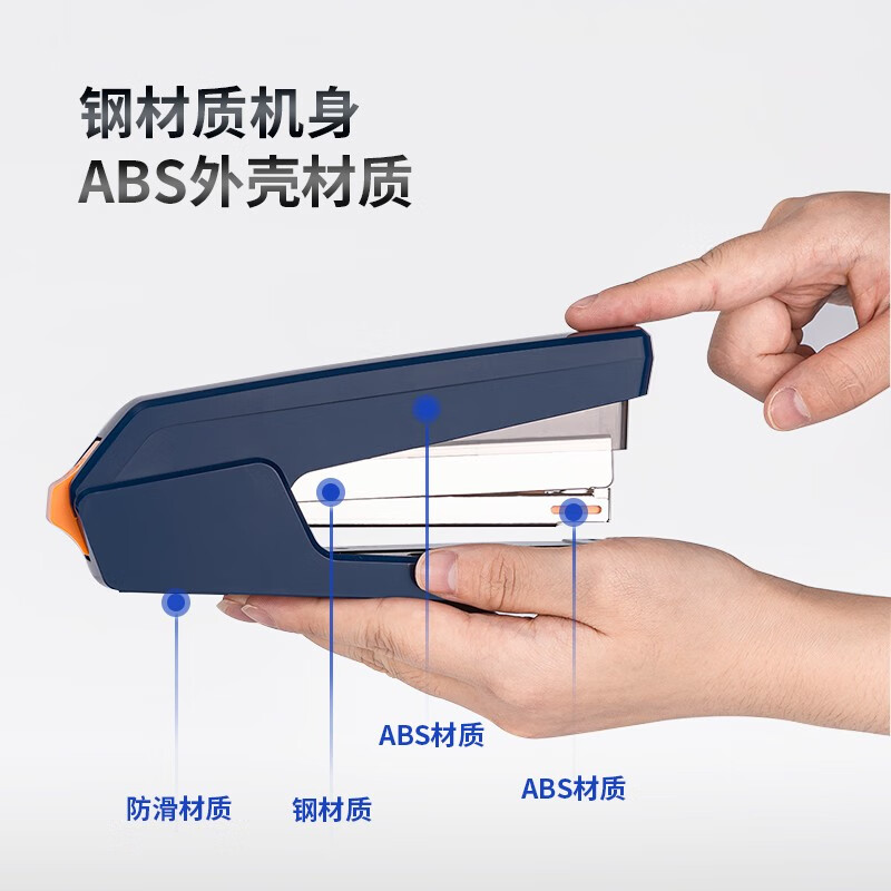 得力(deli)平钉省力型订书机/订书器 专利平钉结构平钉包角 蓝色0433