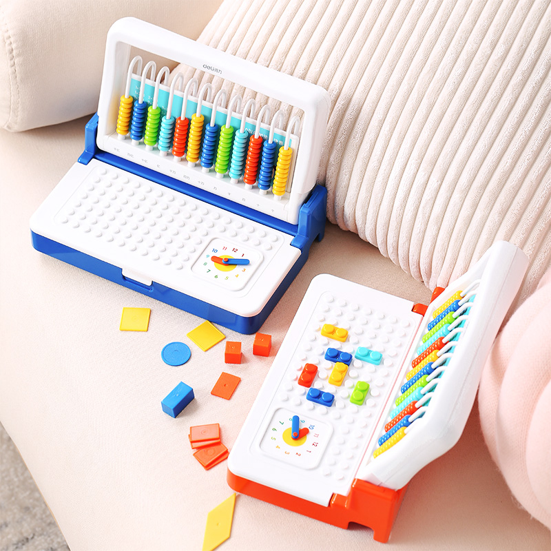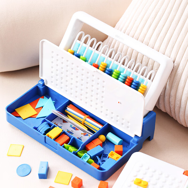 得力(deli)12行儿童学具盒 学生数学计数器多功能计算算术架 蓝色74319