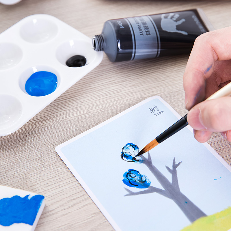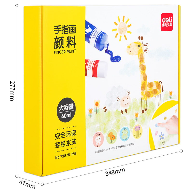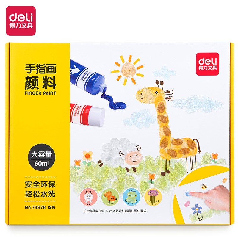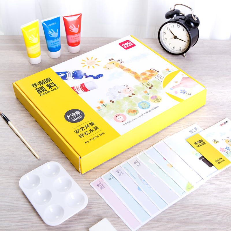 得力(deli)12色60ml 手指画套装可水洗 儿童学生画画绘画涂鸦(带画笔刷毛笔调色盘)玩具美术