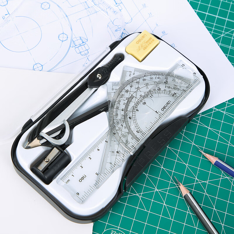 得力(deli)夹铅笔圆规直尺绘图套装 带橡皮卷笔刀学生7件套72151